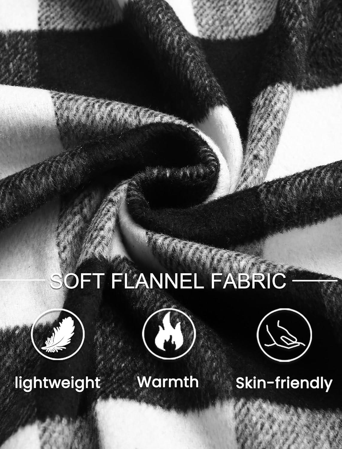 COOFANDY Men’s Flannel Shirts Casual Button Down Plaid Shirt Jacket Long Sleeve Fleece Shacket(Black White)