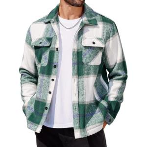 COOFANDY Men’s Flannel Jacket Plaid Shirt Jackets Fleece Shacket Long Sleeve Button Down Fall Thick Warm Outwear(Green Block)