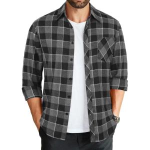COOFANDY Men’s Flannel Plaid Shirts Long Sleeve Button Down Shirts Casual Fall Shirt Jacket(Black&white)