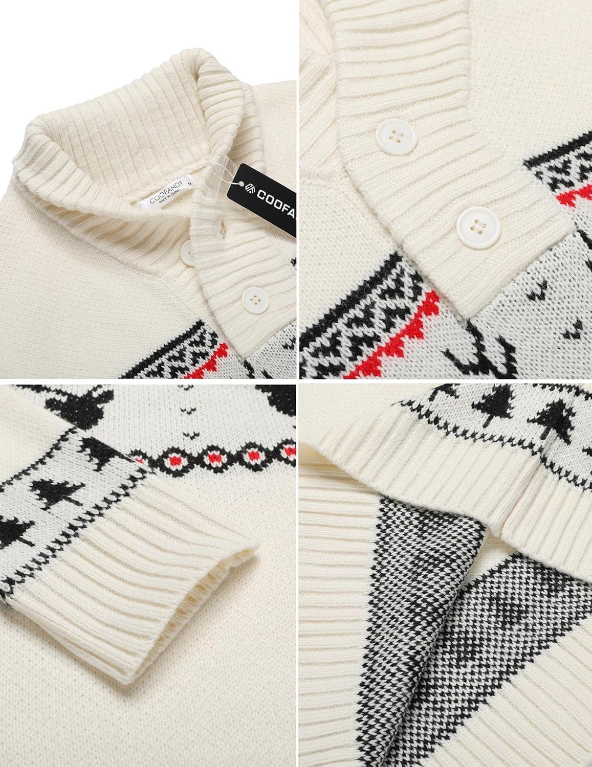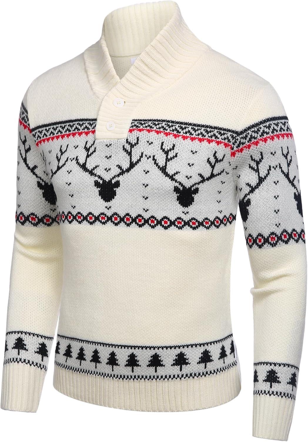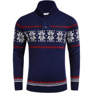 COOFANDY Men’s Christmas Sweater Ugly Knitted Xmas Sweaters Casual Snowflake Pullover Knitwear(Red Dear)