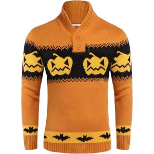 COOFANDY Men’s Christmas Sweater Ugly Knitted Xmas Sweaters Casual Snowflake Pullover Knitwear(Pumpkin)