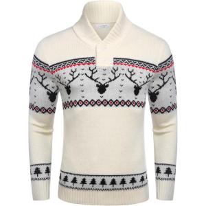 COOFANDY Men’s Christmas Sweater Ugly Knitted Xmas Sweaters Casual Snowflake Pullover Knitwear(White Apricot)