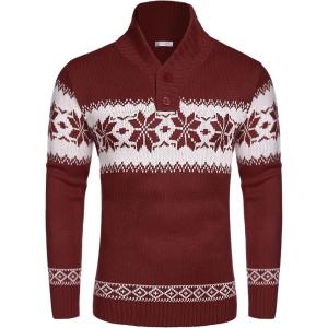 COOFANDY Men’s Christmas Sweater Ugly Knitted Xmas Sweaters Casual Snowflake Pullover Knitwear(Wine Red)