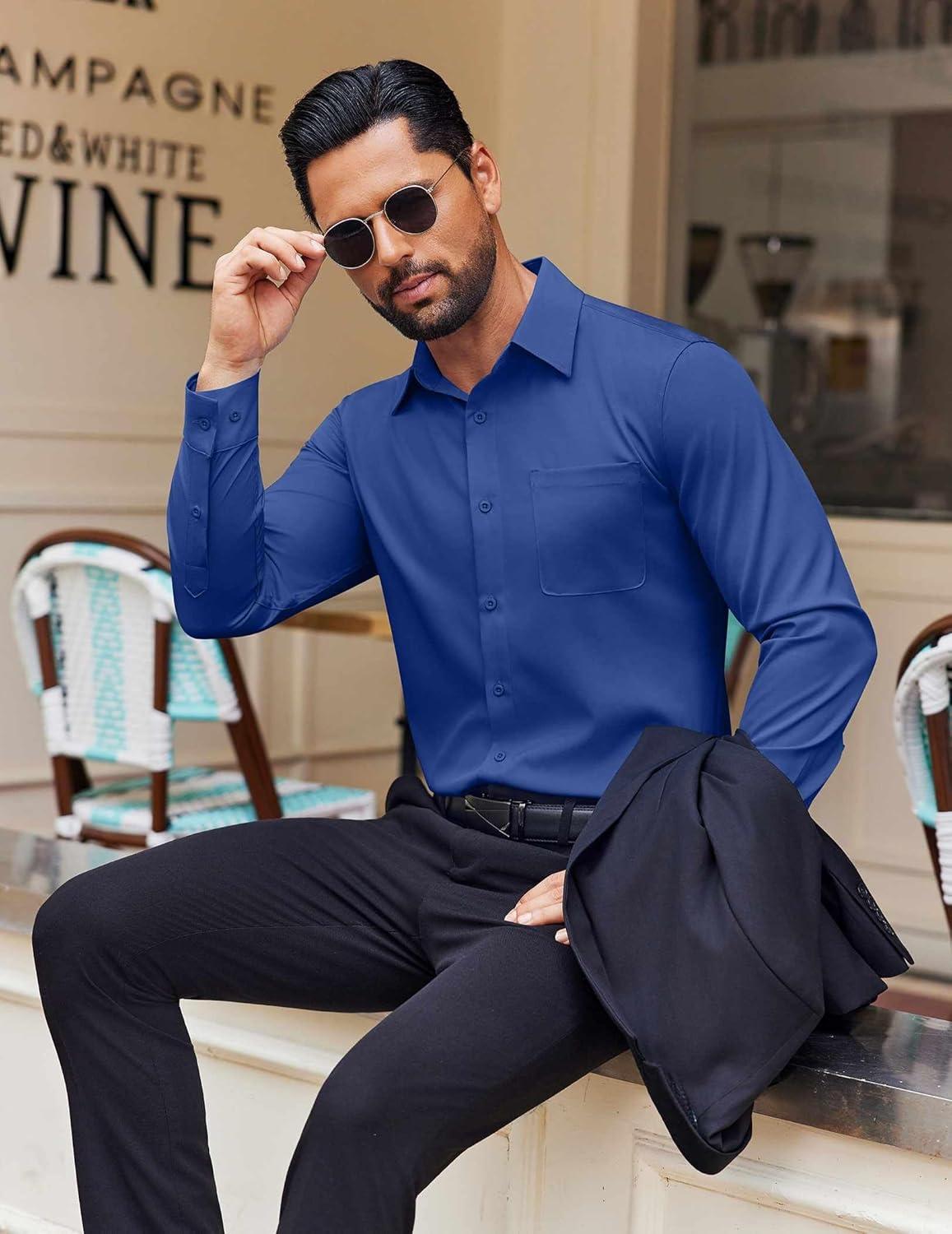 COOFANDY Men’s Dress Shirts Long Sleeve Casual Button Down Shirt Solid Regular Fit Formal Business Shirts(Clear Blue)