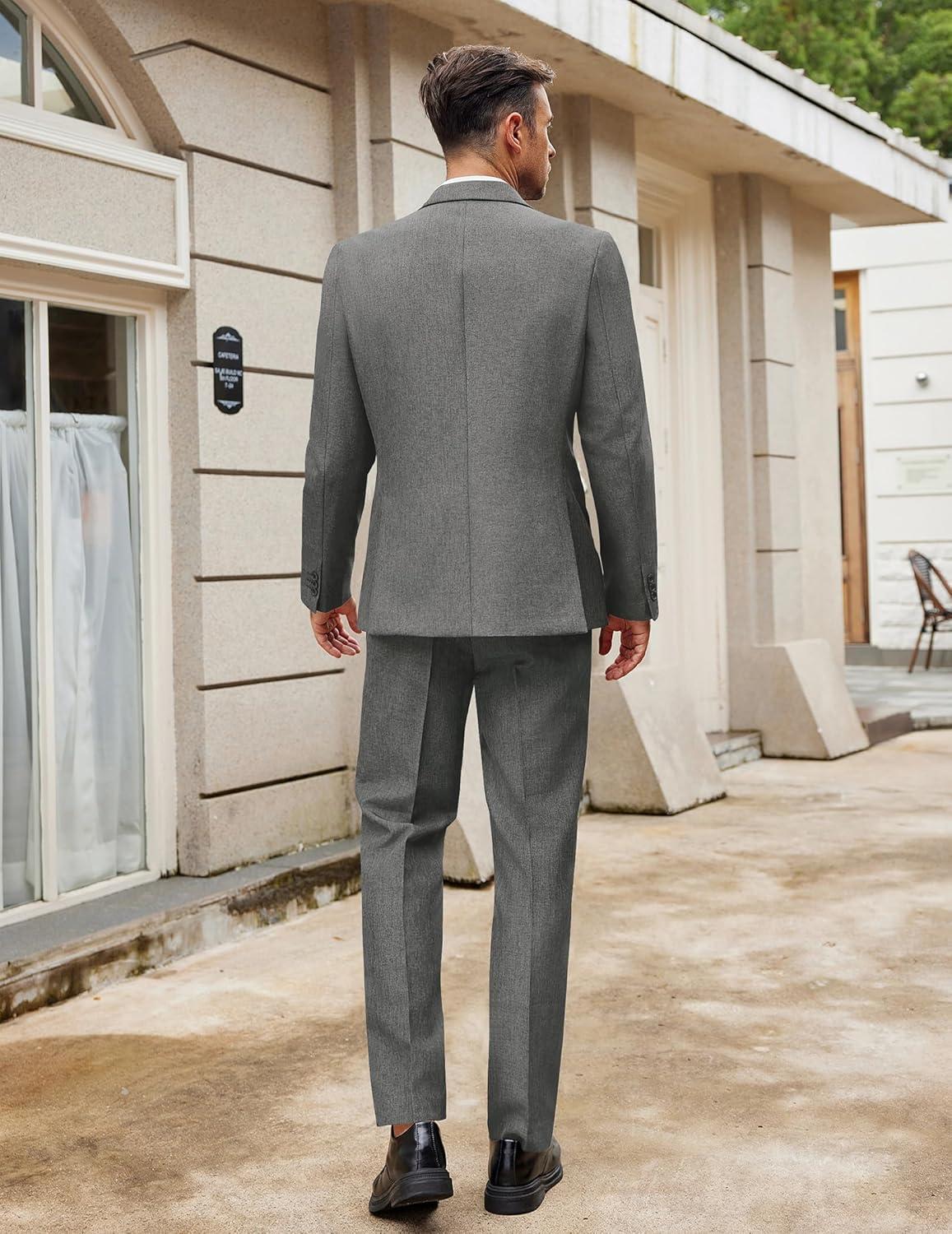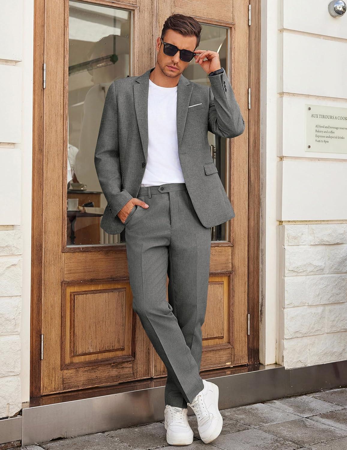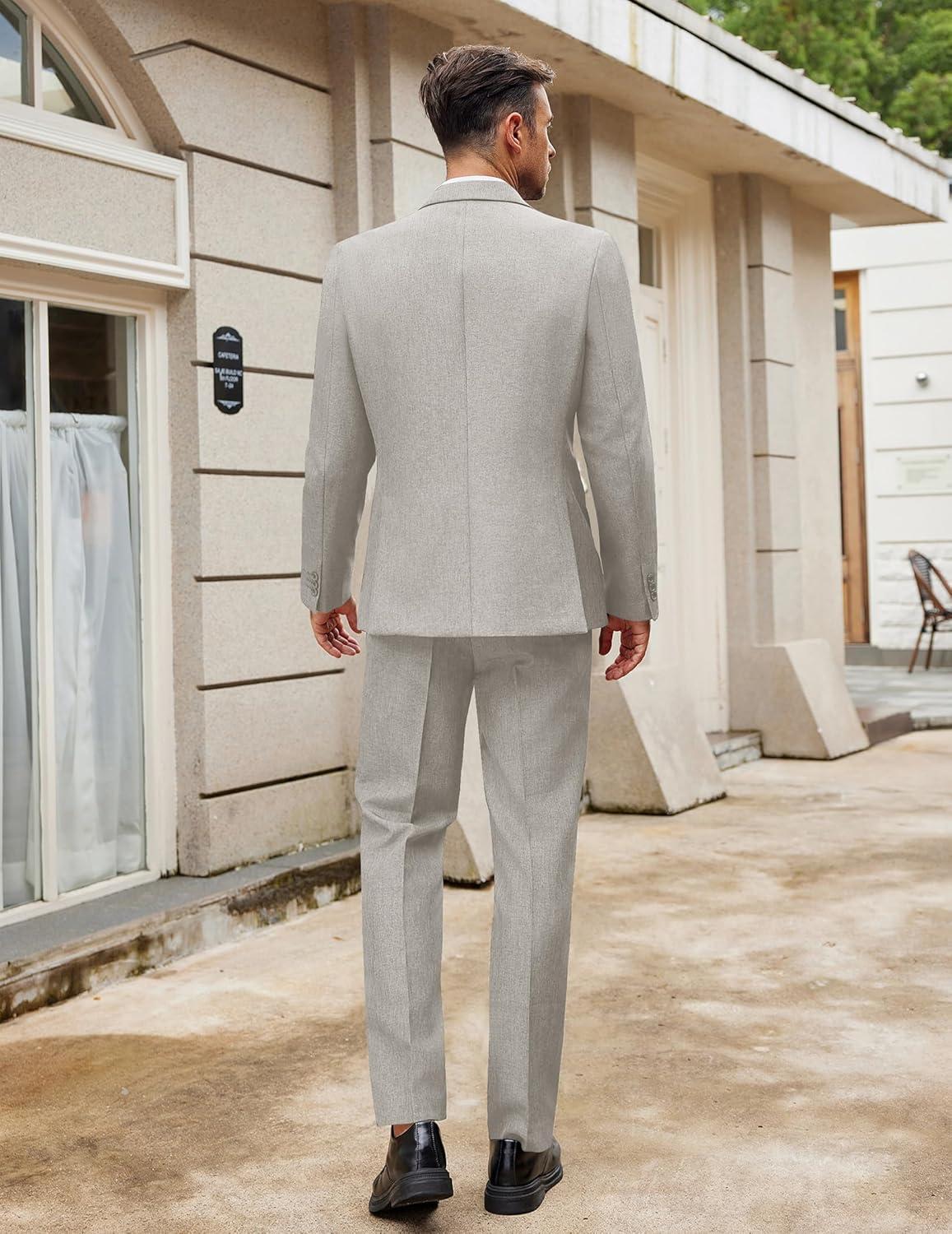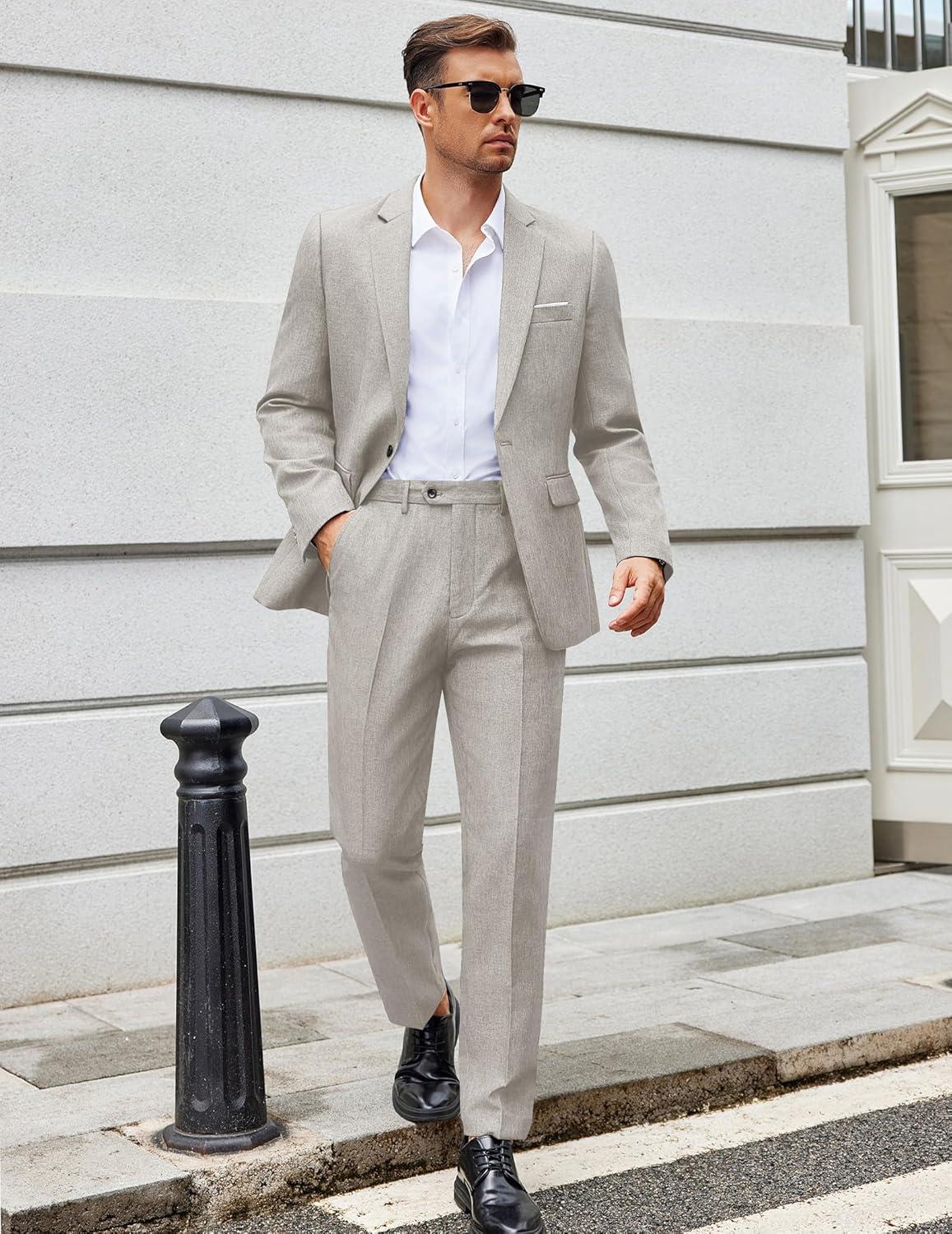 COOFANDY Men Suits Classic Fit 2 Piece Suit Set One Button Casual Blazer Wedding Bussiness Suit Separates(Linen Gray)
