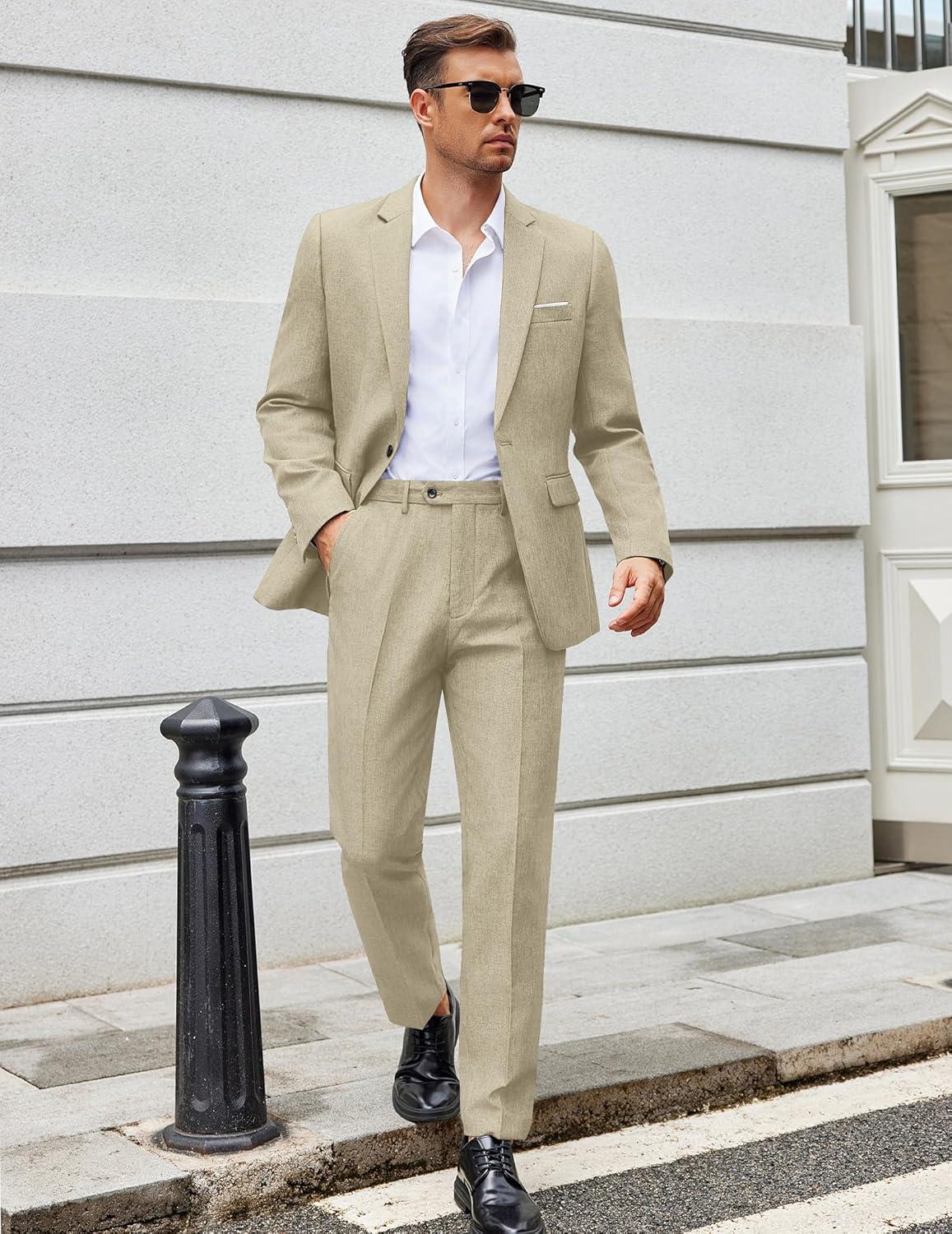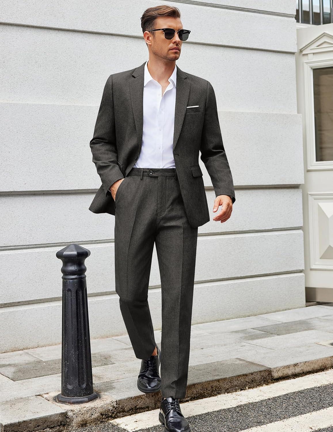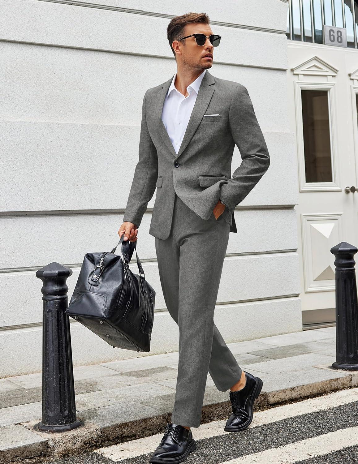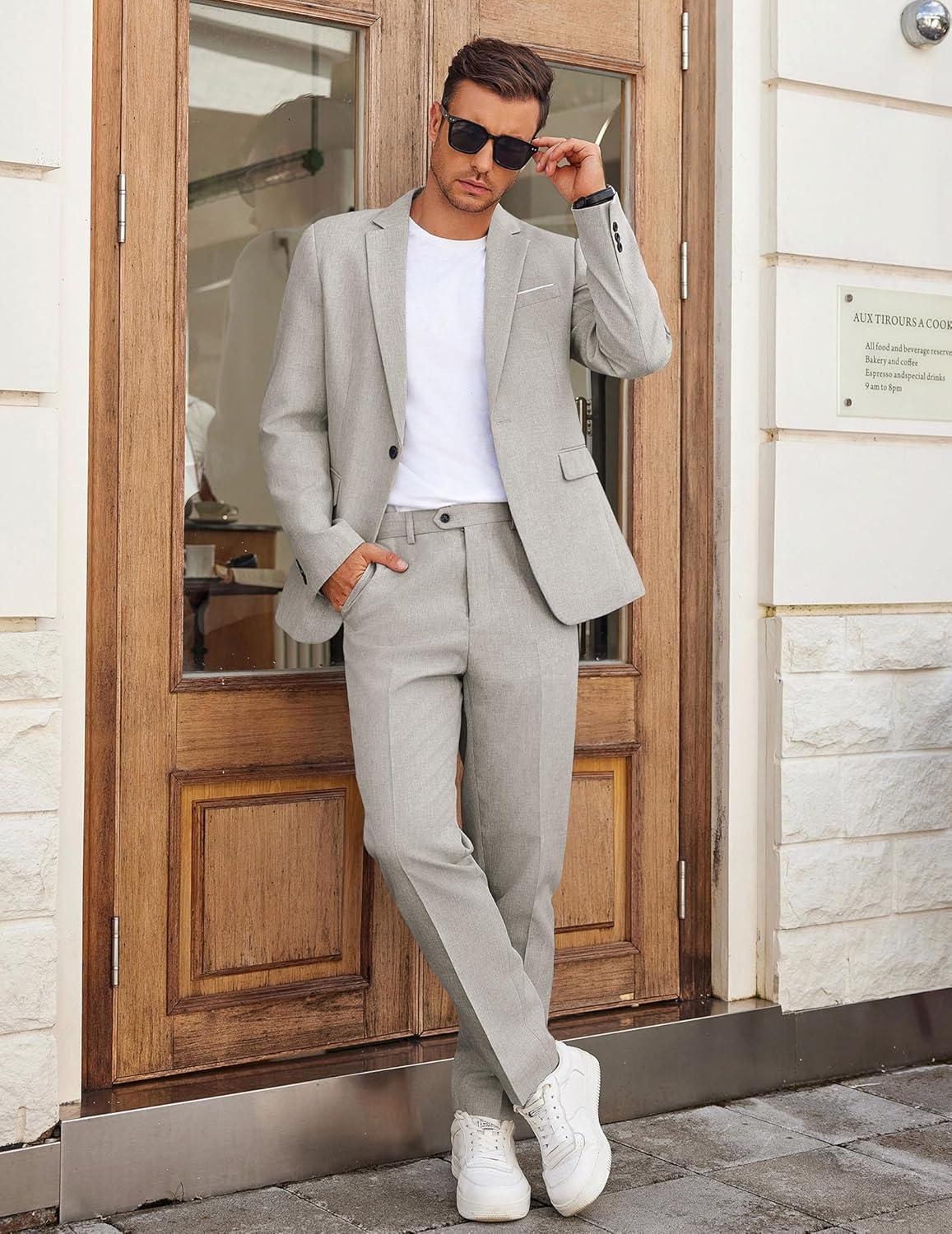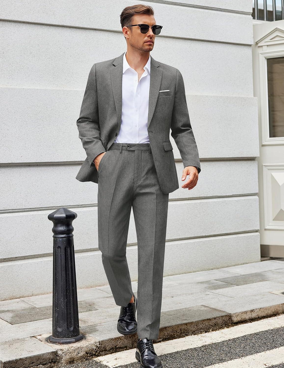 COOFANDY Men Suits Classic Fit 2 Piece Suit Set One Button Casual Blazer Wedding Bussiness Suit Separates(Linen Gray)