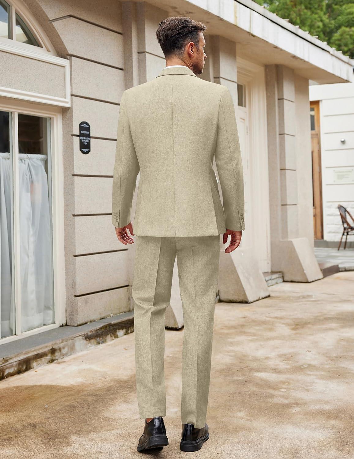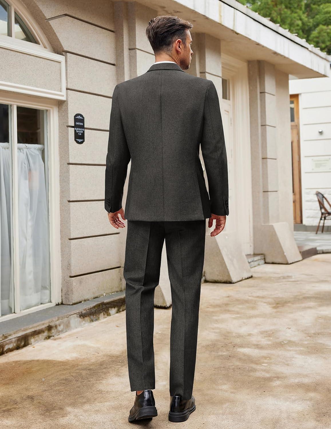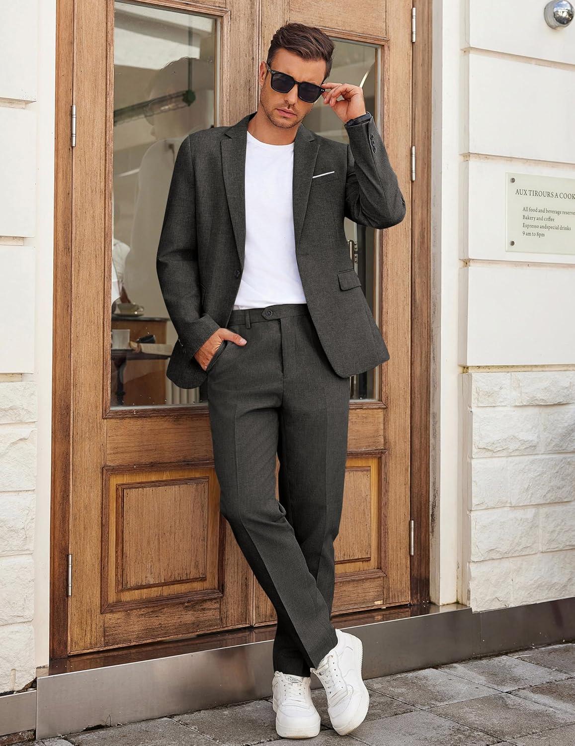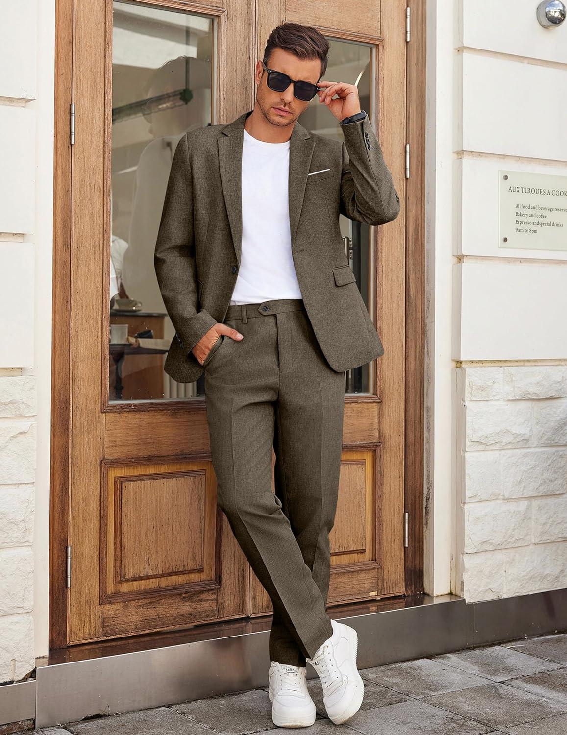 COOFANDY Men Suits Classic Fit 2 Piece Suit Set One Button Casual Blazer Wedding Bussiness Suit Separates(Linen Gray)