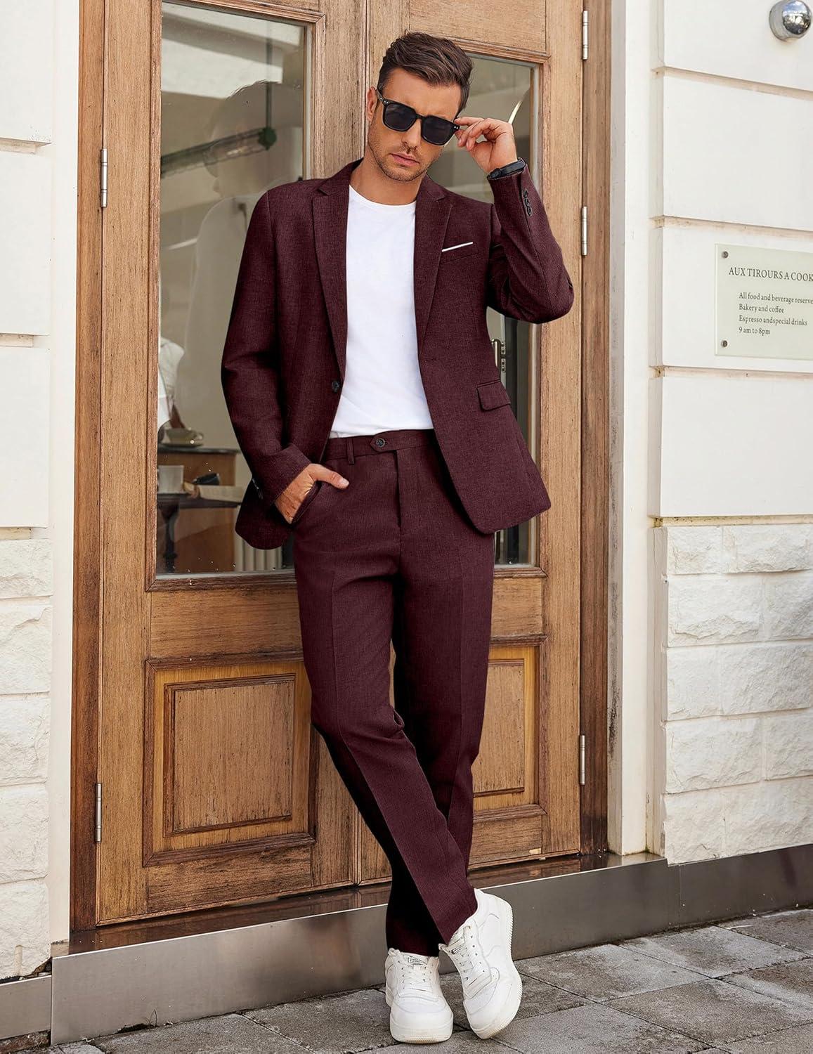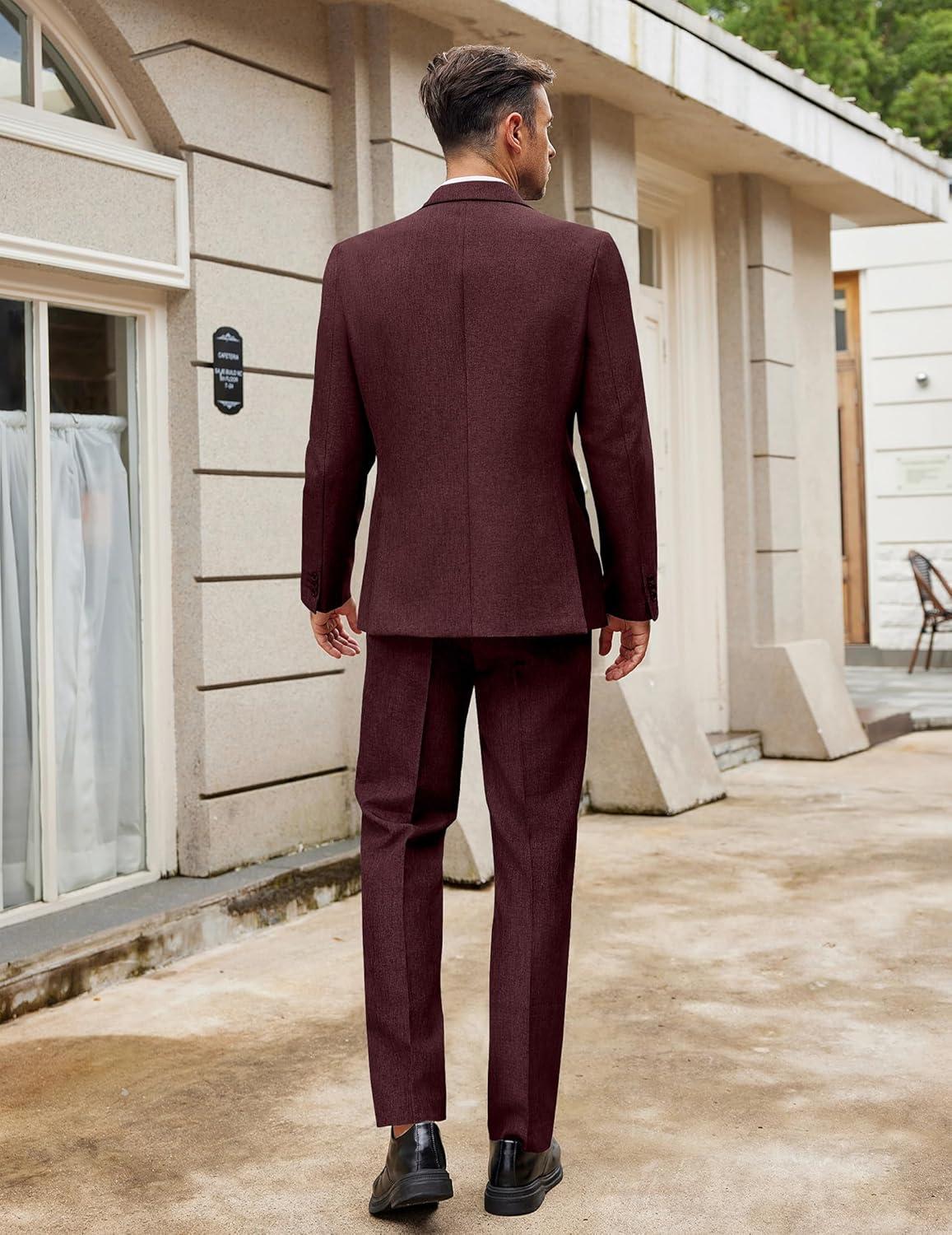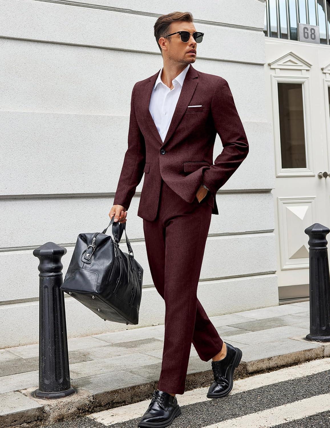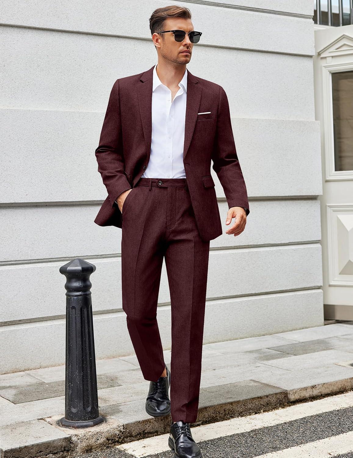 COOFANDY Men Suits Classic Fit 2 Piece Suit Set One Button Casual Blazer Wedding Bussiness Suit Separates(Burgundy)