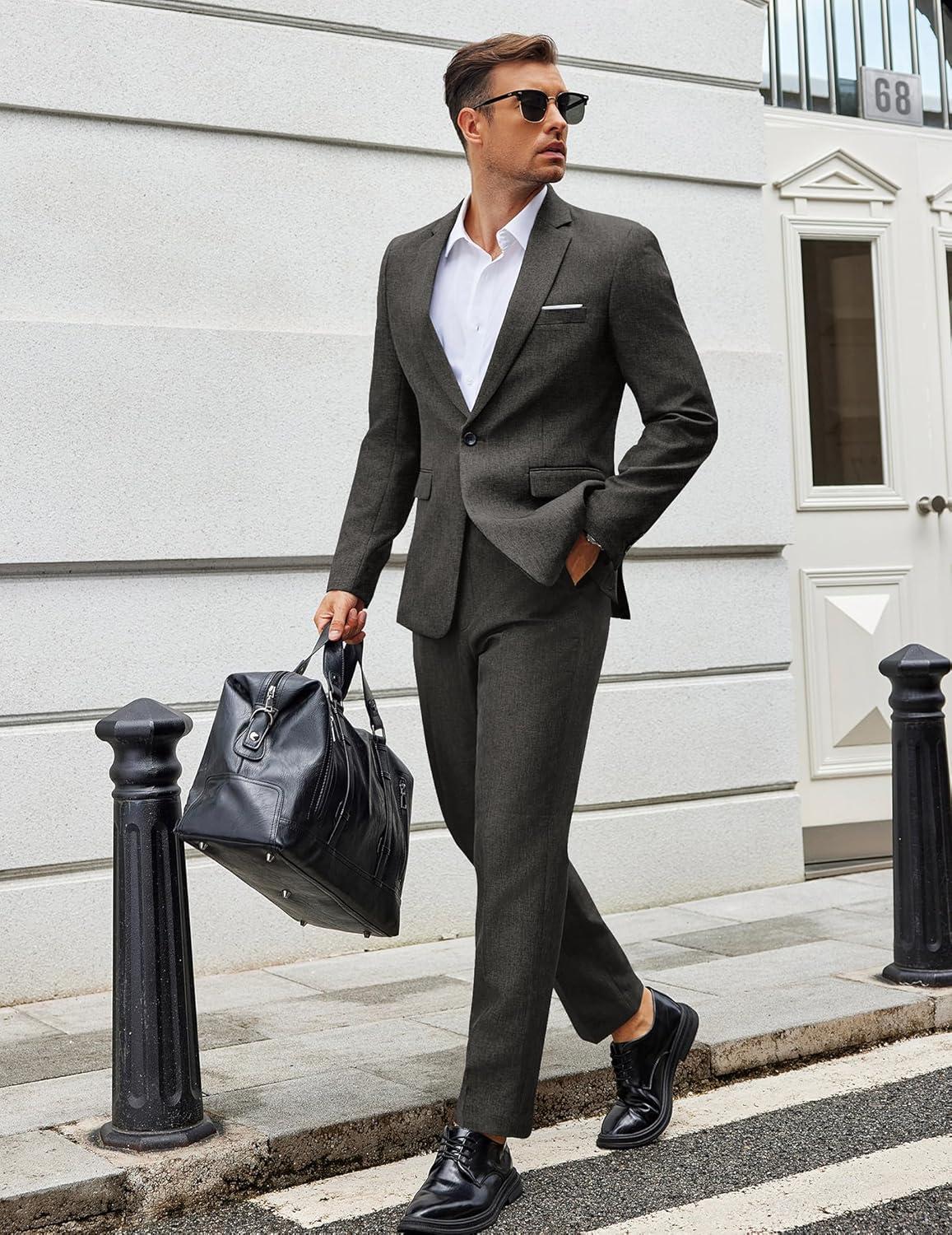 COOFANDY Men Suits Classic Fit 2 Piece Suit Set One Button Casual Blazer Wedding Bussiness Suit Separates(Dark Gray)