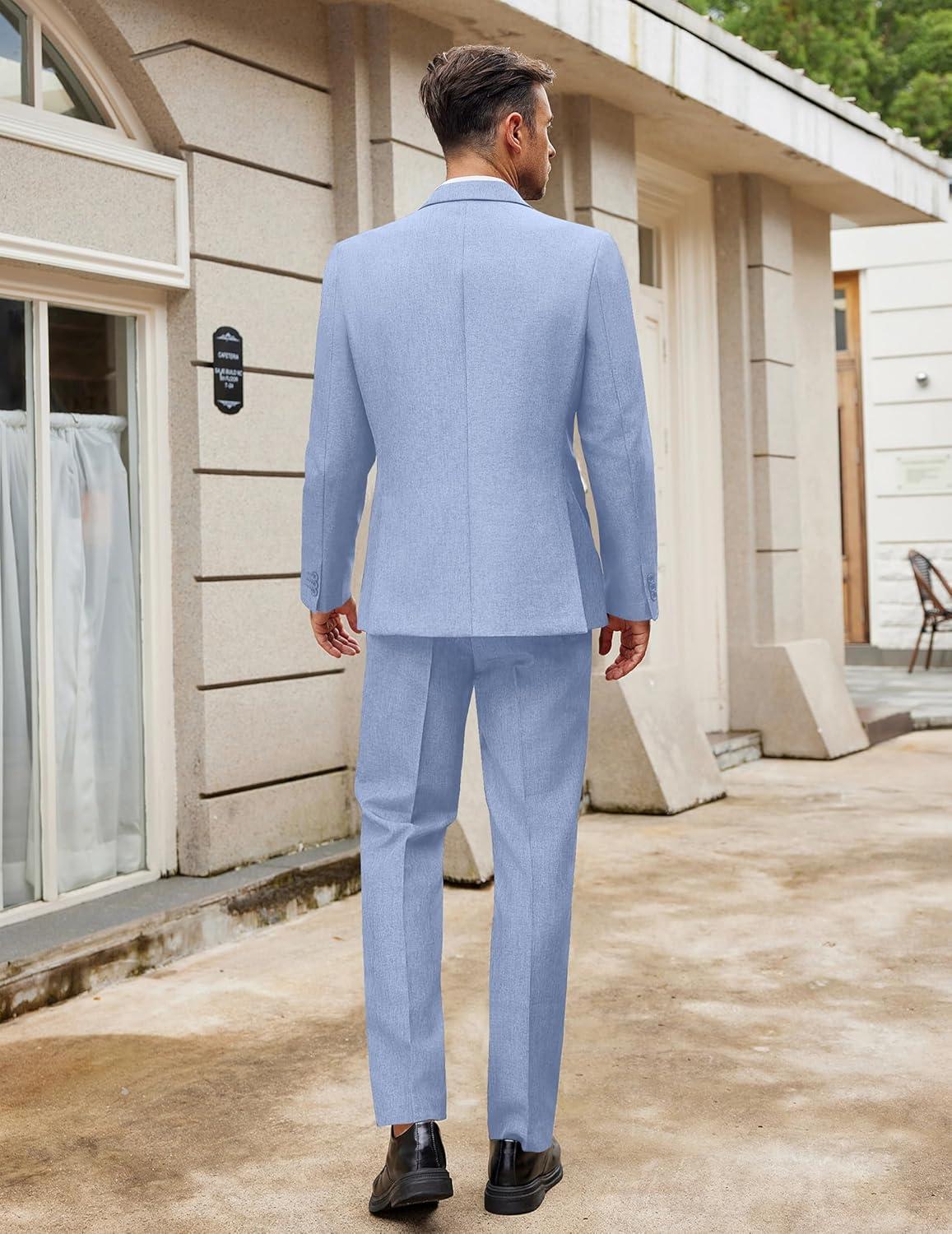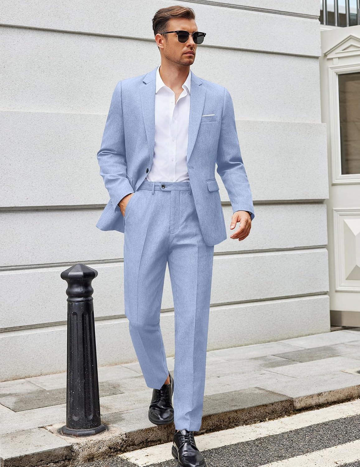 COOFANDY Men Suits Classic Fit 2 Piece Suit Set One Button Casual Blazer Wedding Bussiness Suit Separates(Light Blue)