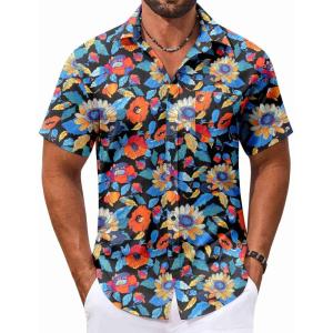 COOFANDY Men’s Hawaiian Shirt Short Sleeve Casual Button Down Tropical Summer Beach Aloha Shirts(Black-colorful Flowers)