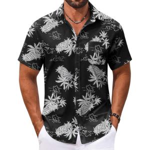COOFANDY Men’s Hawaiian Shirt Short Sleeve Casual Button Down Tropical Summer Beach Aloha Shirts(Black-pineapple)