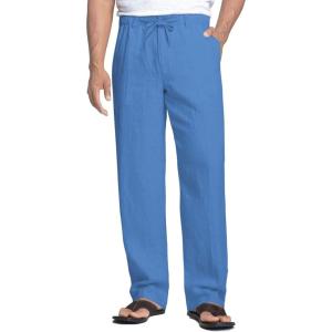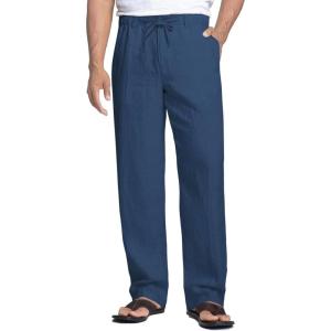 COOFANDY Men’s Linen Pants Casual Elastic Waist Drawstring Beach Trousers(Blue)