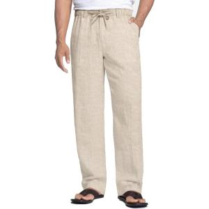 COOFANDY Men’s Linen Pants Casual Elastic Waist Drawstring Beach Trousers(Khaki)