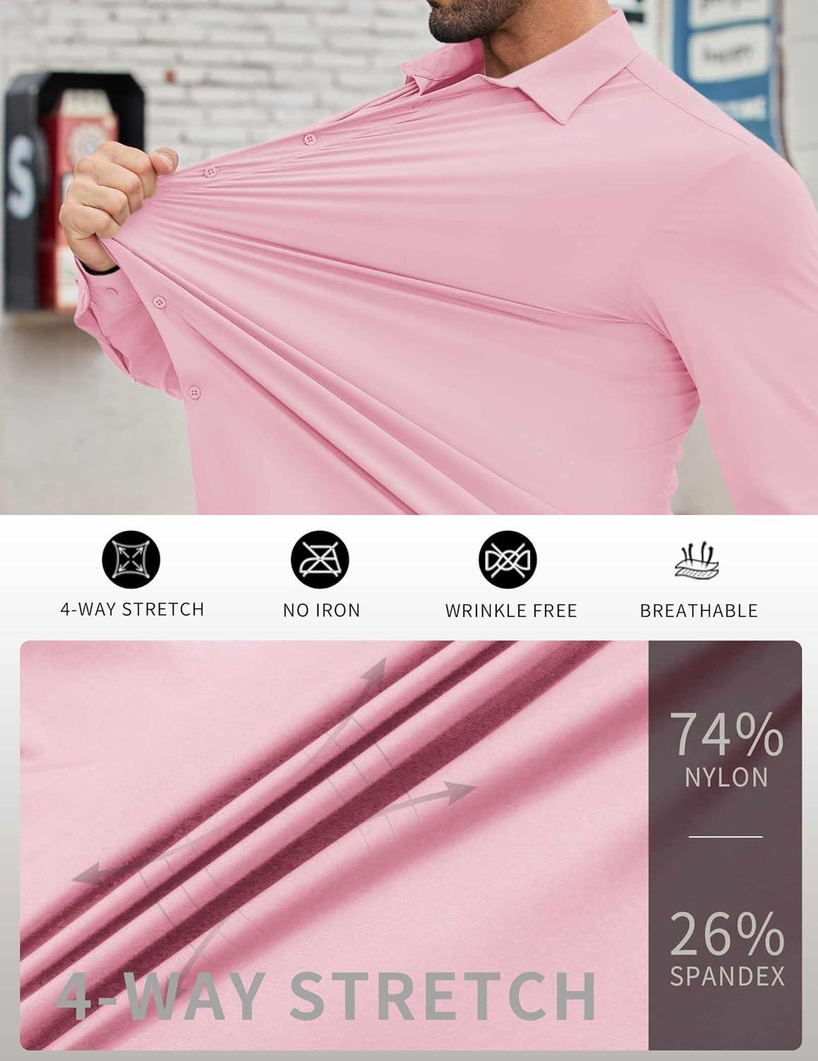 COOFANDY Mens Stretch Dress Shirts Muscle Fit Wrinkle Free Long Sleeve Button Down Shirt Business Casual Shirts(Light Pink)