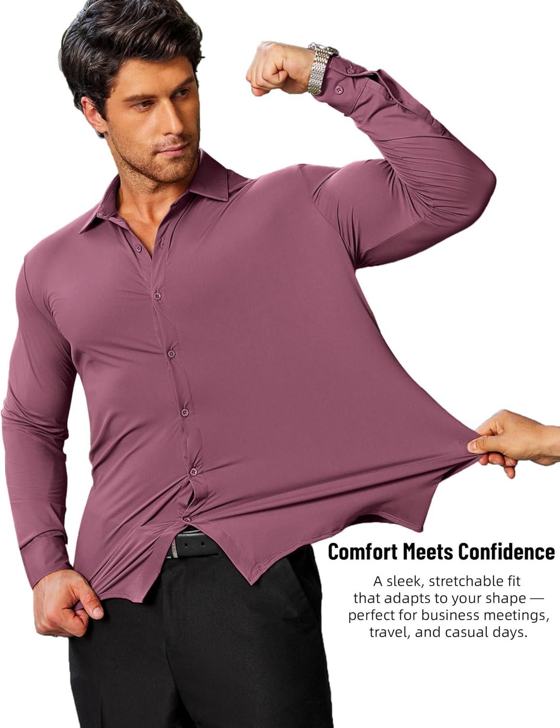 COOFANDY Mens Stretch Dress Shirts Muscle Fit Wrinkle Free Long Sleeve Button Down Shirt Business Casual Shirts(Purple)
