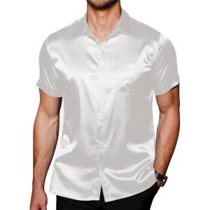 COOFANDY Mens Silk Button Down Short Sleeve Shirt Satin Dress Shirts Summer Beach Wedding Shirt(White-pure)