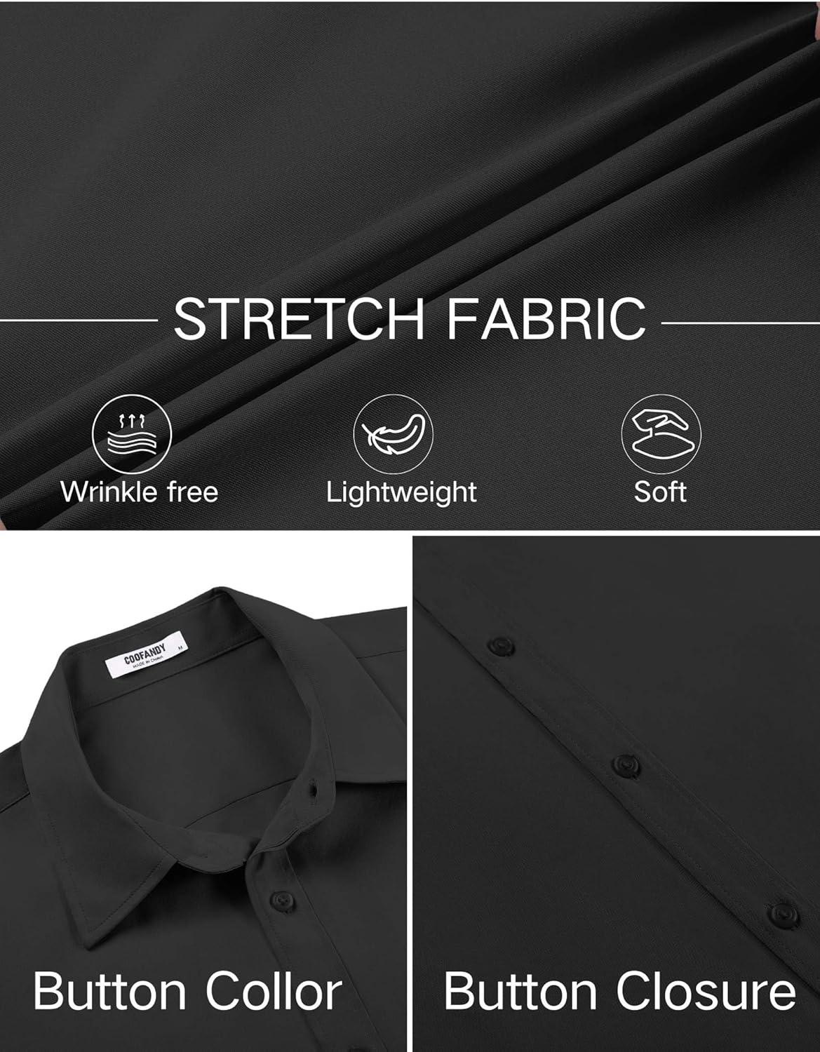 COOFANDY Men’s Stretch Dress Shirts Short Sleeve Wrinkle Free Casual Button Down Shirts(Black)
