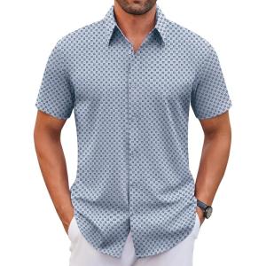 COOFANDY Men’s Stretch Dress Shirts Short Sleeve Wrinkle Free Casual Button Down Shirts(Blue Pattern)