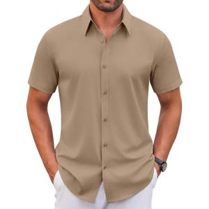 COOFANDY Men’s Stretch Dress Shirts Short Sleeve Wrinkle Free Casual Button Down Shirts(Khaki)