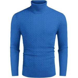 COOFANDY Men’s Slim Fit Turtleneck Sweater Casual Twist Patterned Pullover Knitted Sweaters(Royal Blue)