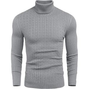COOFANDY Men’s Slim Fit Turtleneck Sweater Casual Twist Patterned Pullover Knitted Sweaters(Grey)