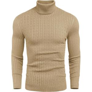 COOFANDY Men’s Slim Fit Turtleneck Sweater Casual Twist Patterned Pullover Knitted Sweaters(Khaki)