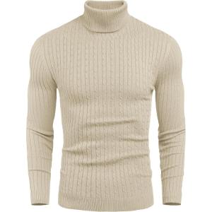 COOFANDY Men’s Slim Fit Turtleneck Sweater Casual Twist Patterned Pullover Knitted Sweaters(Light Khaki)