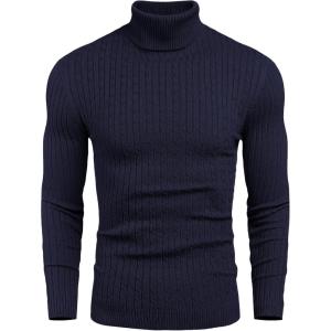 COOFANDY Men’s Slim Fit Turtleneck Sweater Casual Twist Patterned Pullover Knitted Sweaters(Navy Blue)