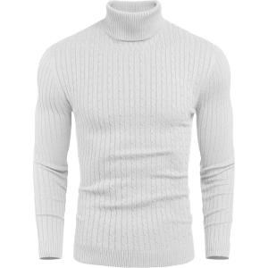 COOFANDY Men’s Slim Fit Turtleneck Sweater Casual Twist Patterned Pullover Knitted Sweaters(White)