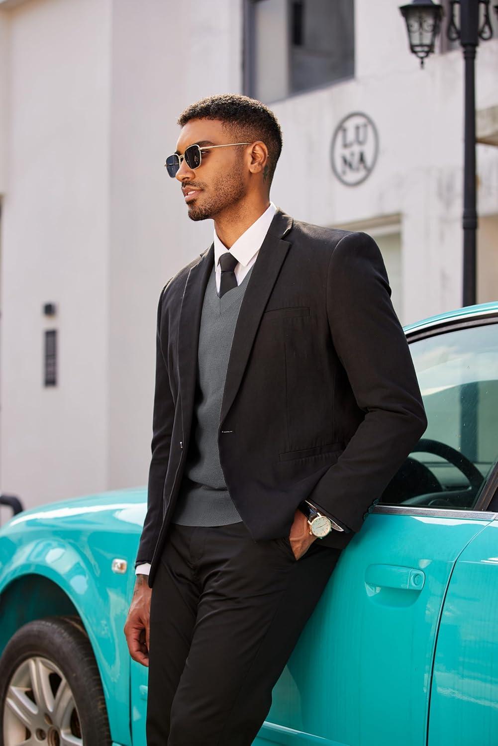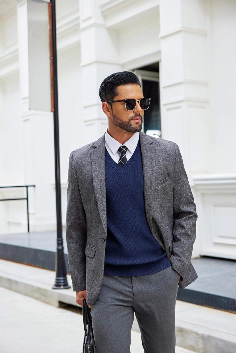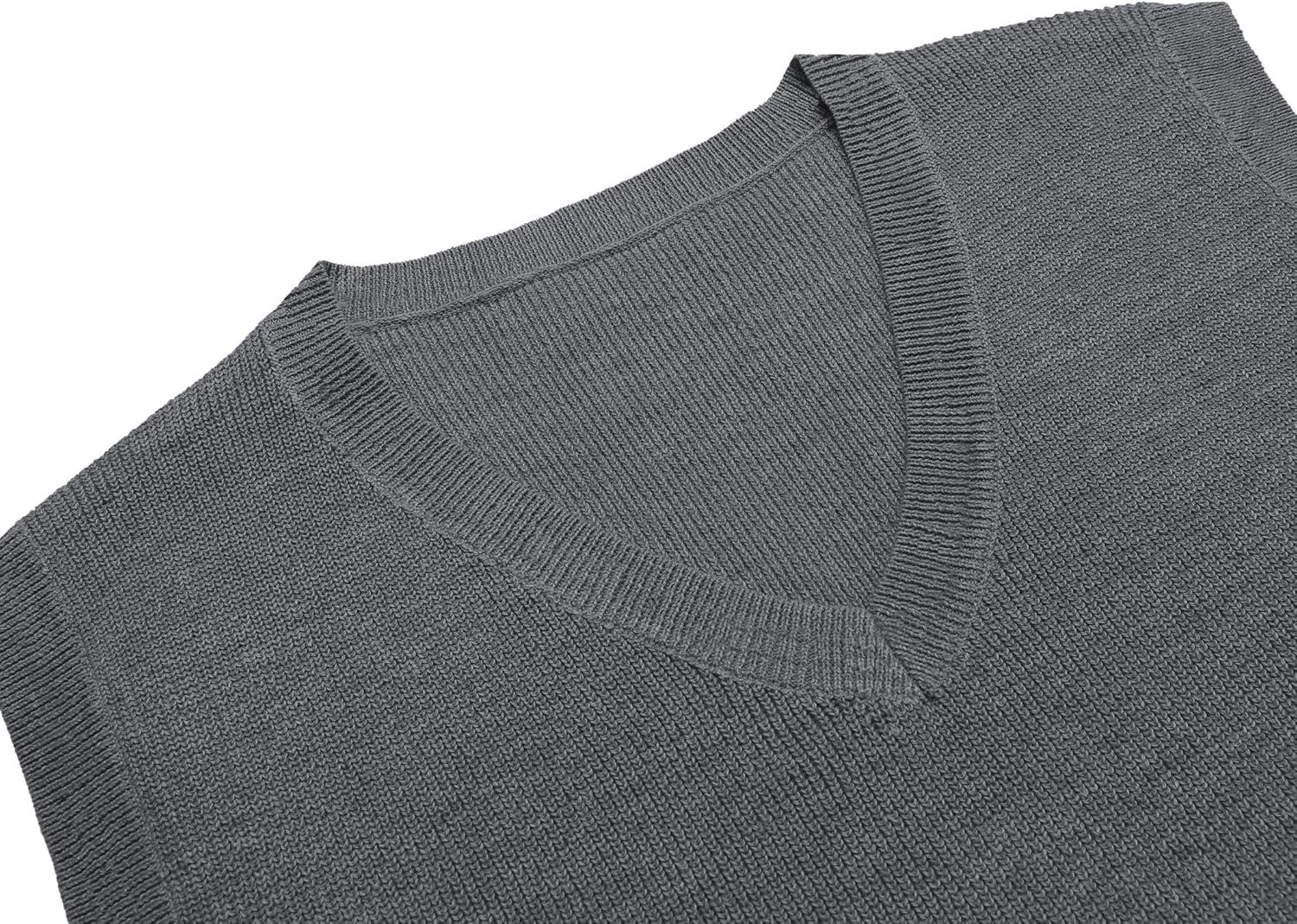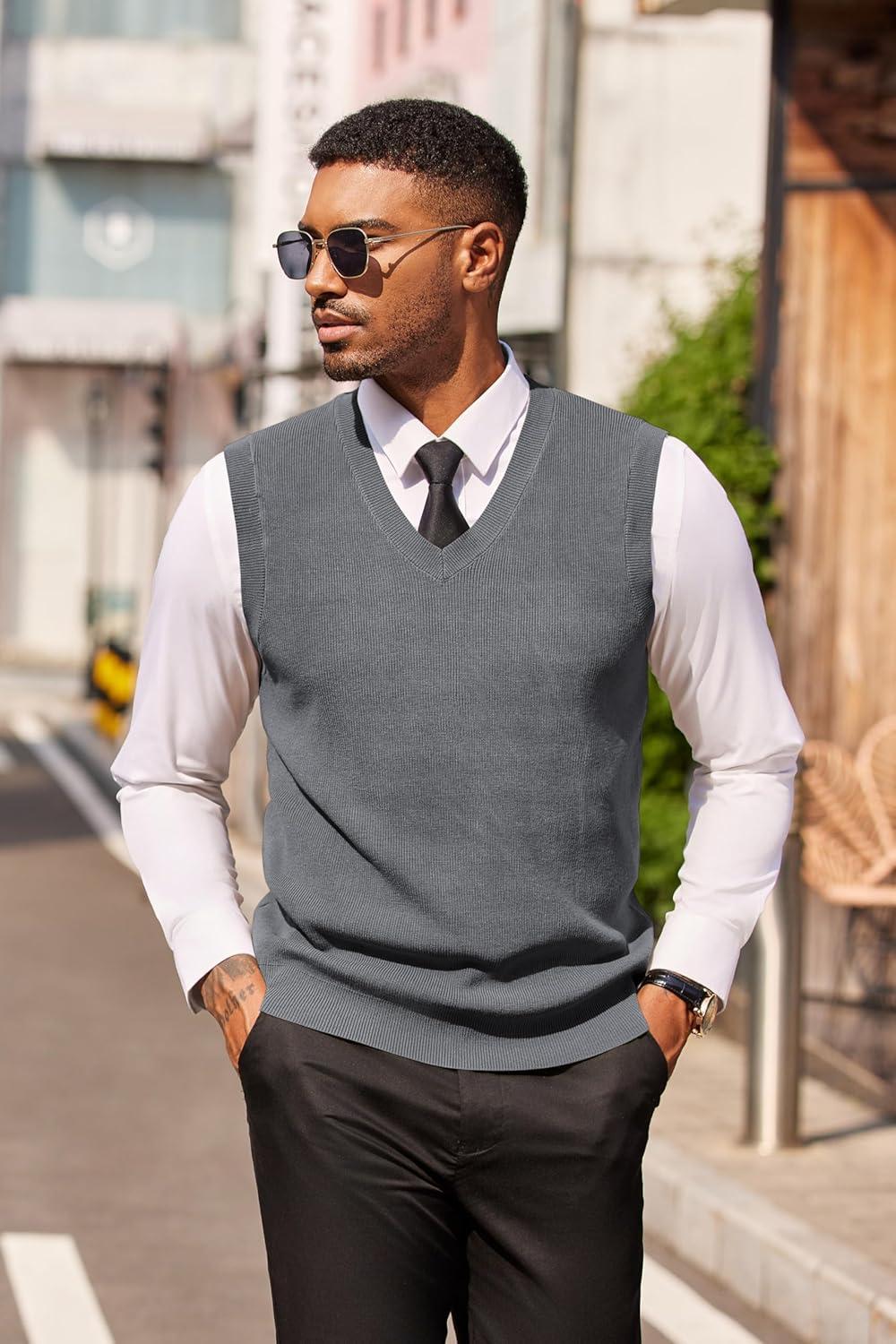 COOFANDY Men’s Sweater Vest V Neck Sleeveless Sweater Slim Fit Casual Knitted Pullover Sweater(Grey)