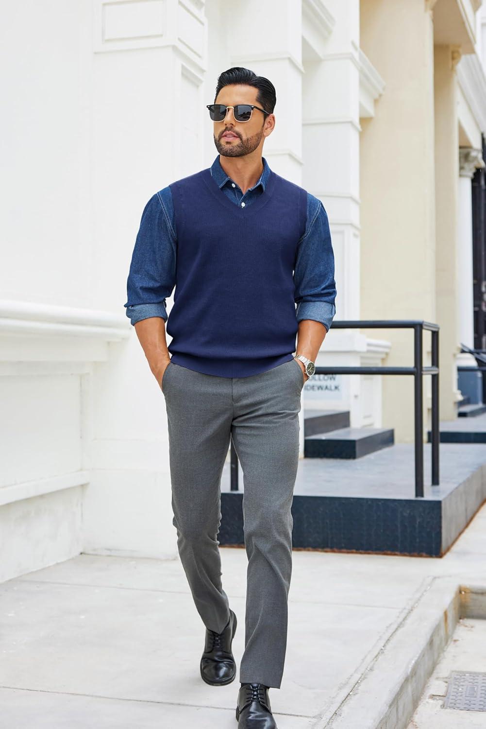 COOFANDY Men’s Sweater Vest V Neck Sleeveless Sweater Slim Fit Casual Knitted Pullover Sweater(Navy Blue)