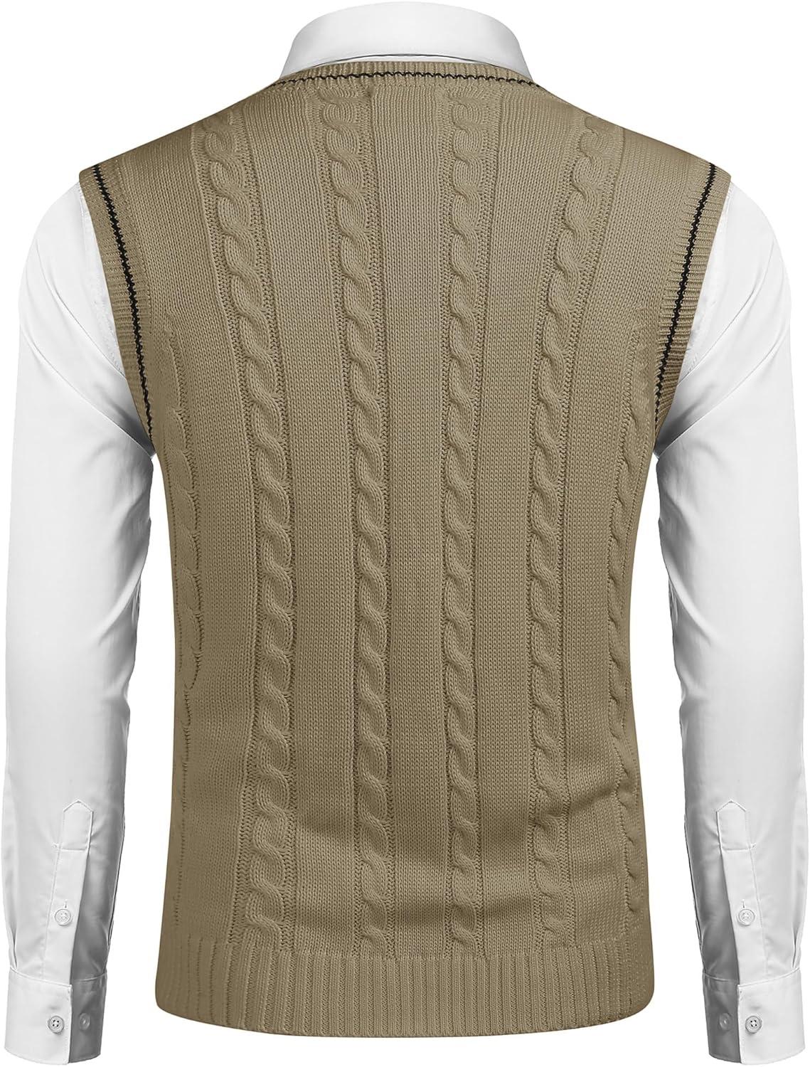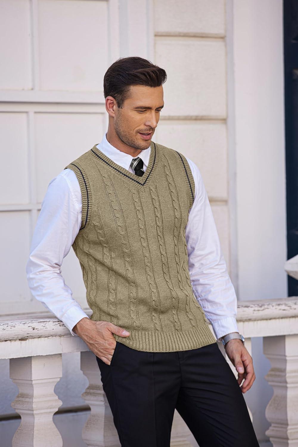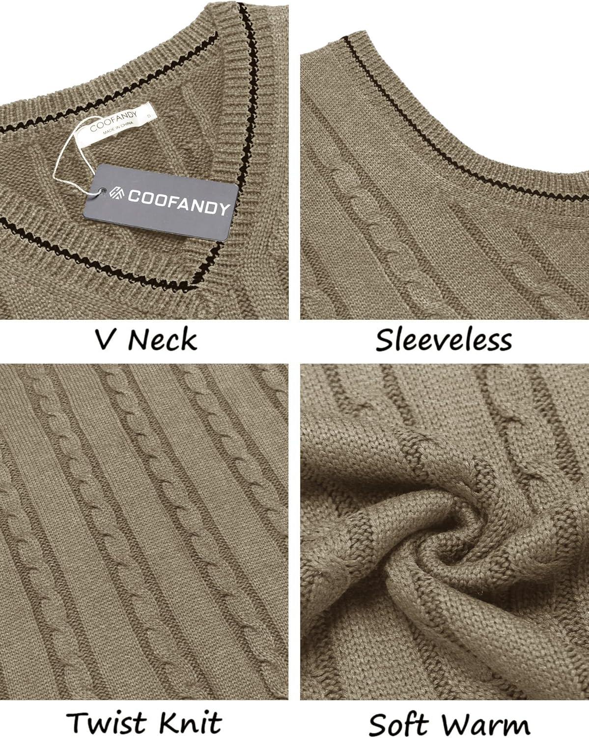 COOFANDY Men’s Sweater Vest V Neck Slim Fit Casual Sleeveless Twisted Knitted Pullover Sweater(Khaki)
