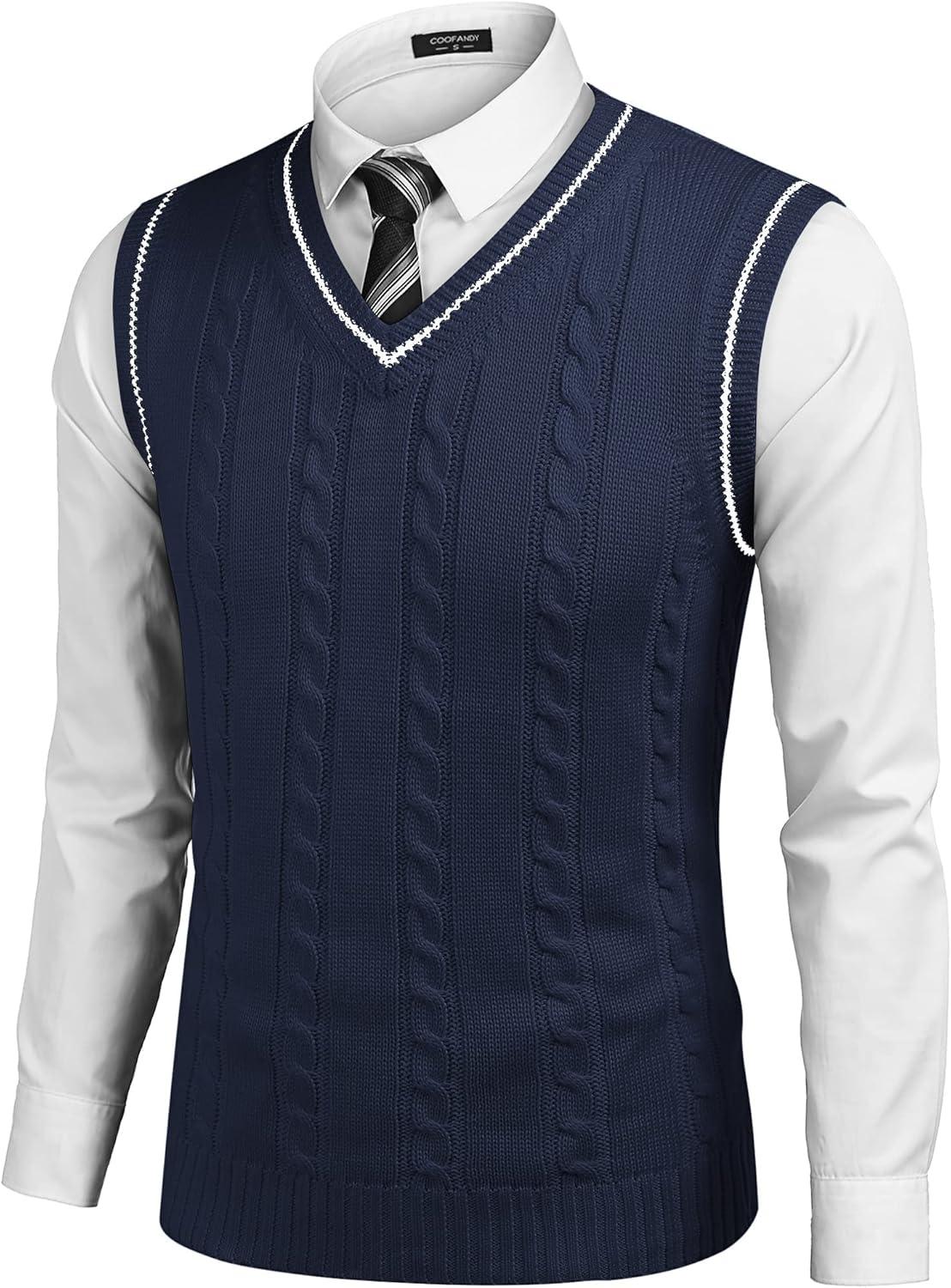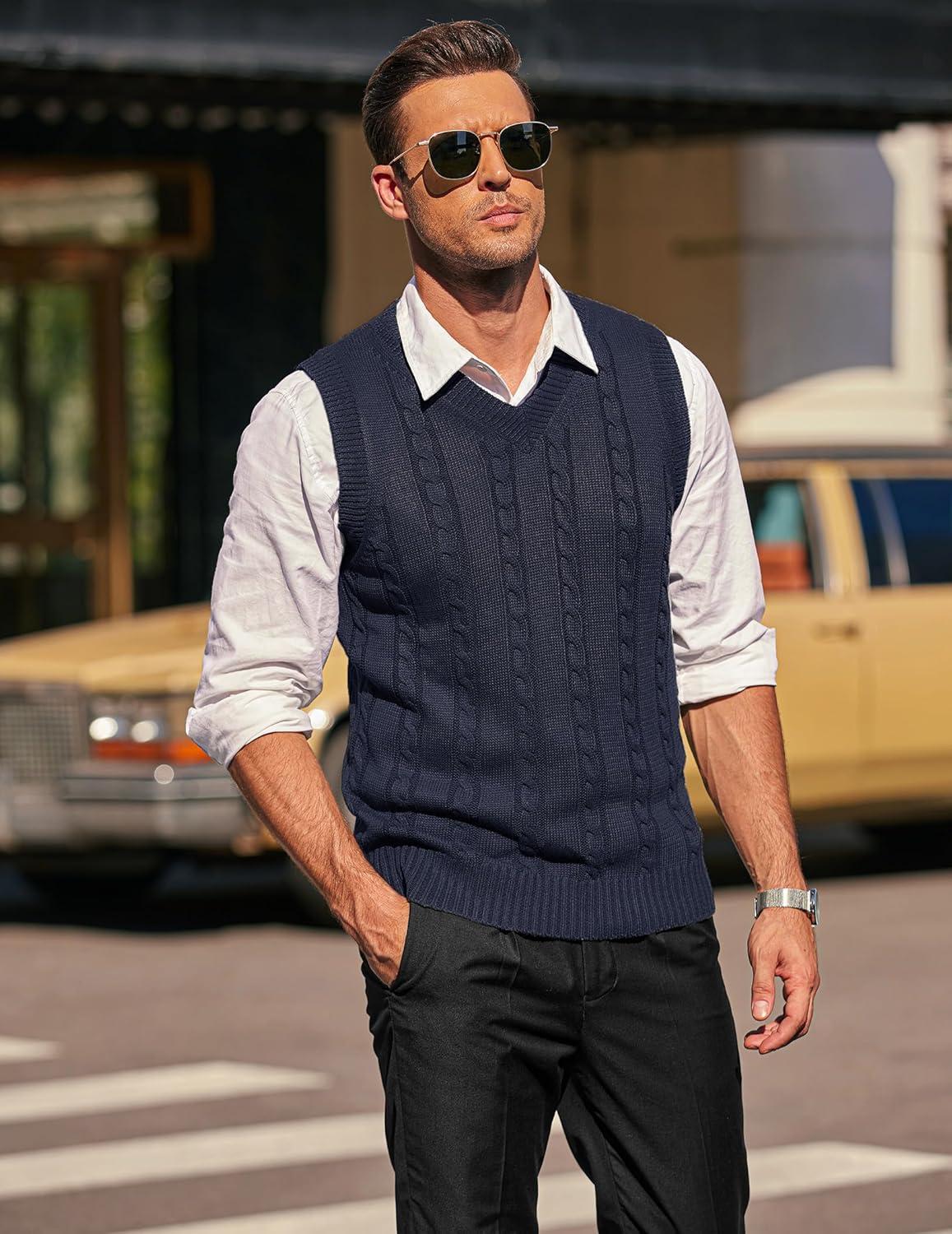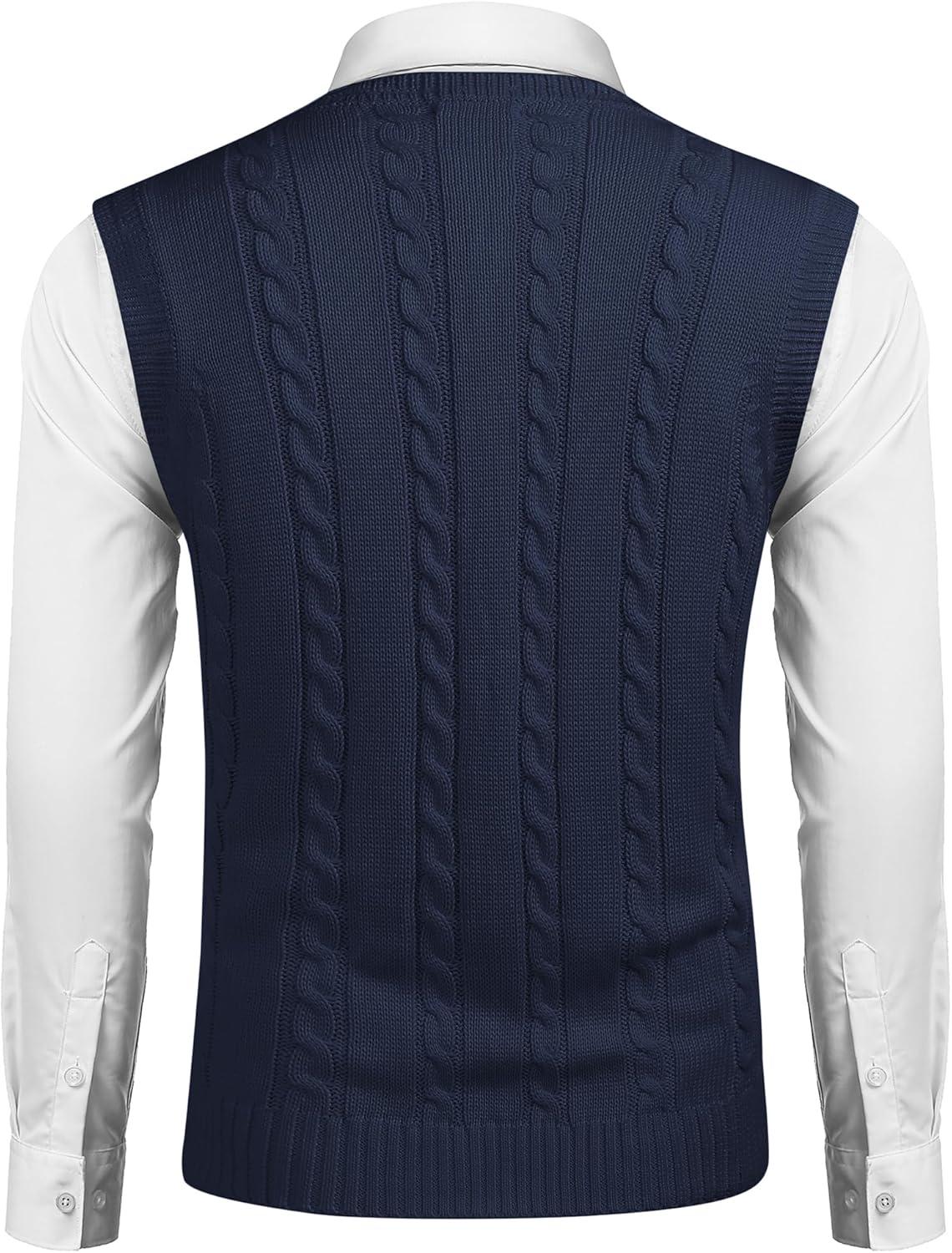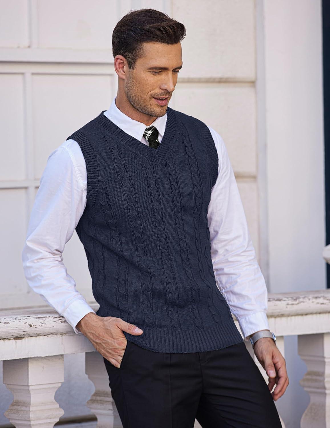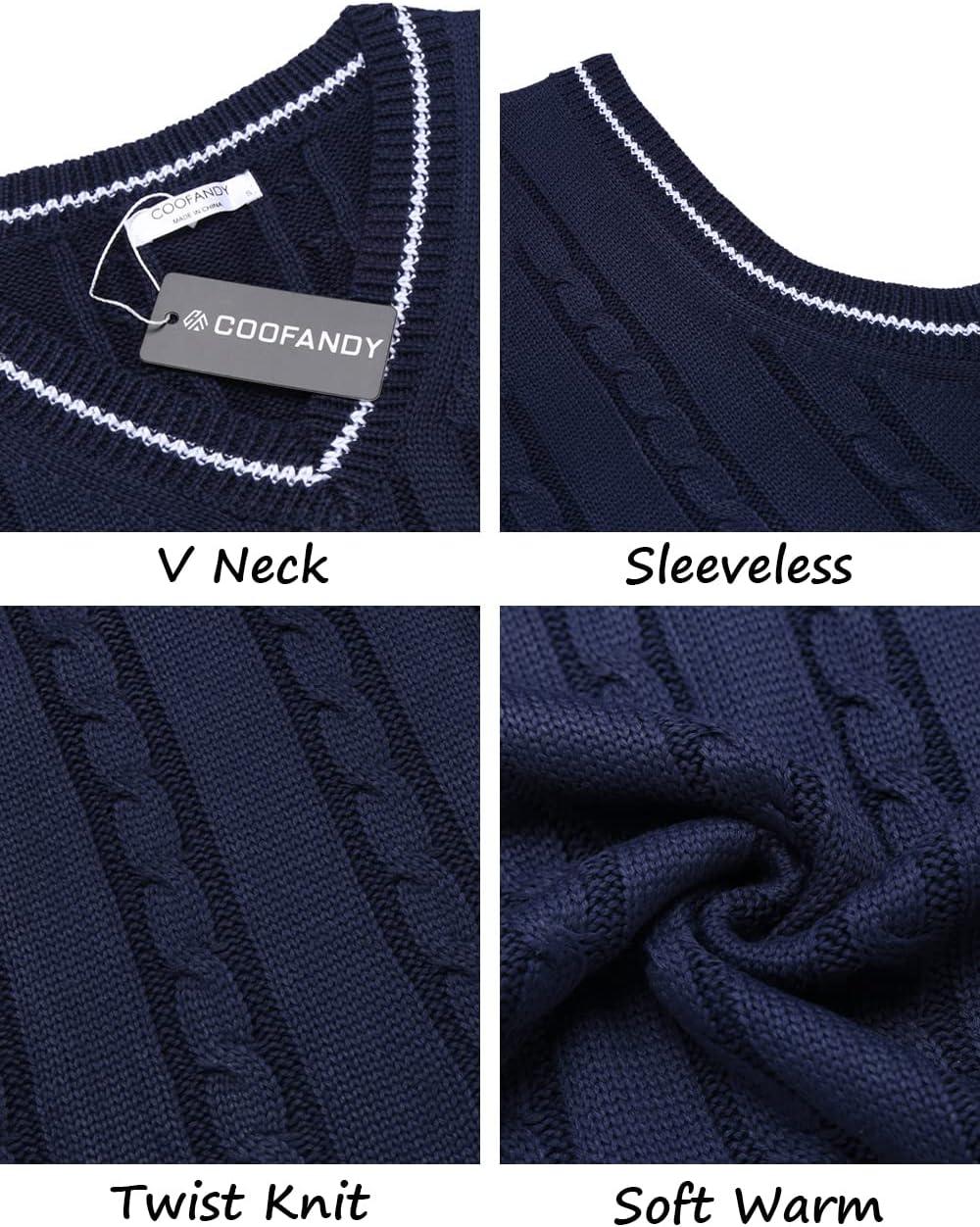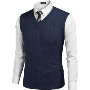 COOFANDY Men’s Sweater Vest V Neck Slim Fit Casual Sleeveless Twisted Knitted Pullover Sweater(Navy Blue)