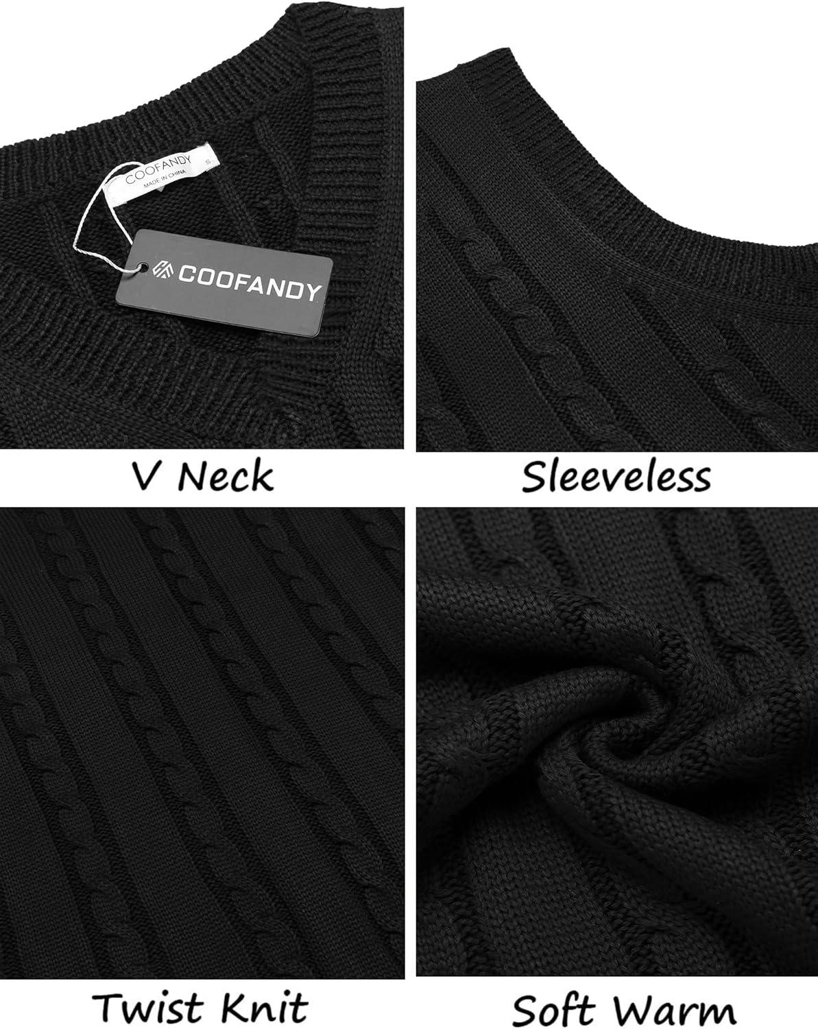 COOFANDY Men’s Sweater Vest V Neck Slim Fit Casual Sleeveless Twisted Knitted Pullover Sweater(Solid Black)