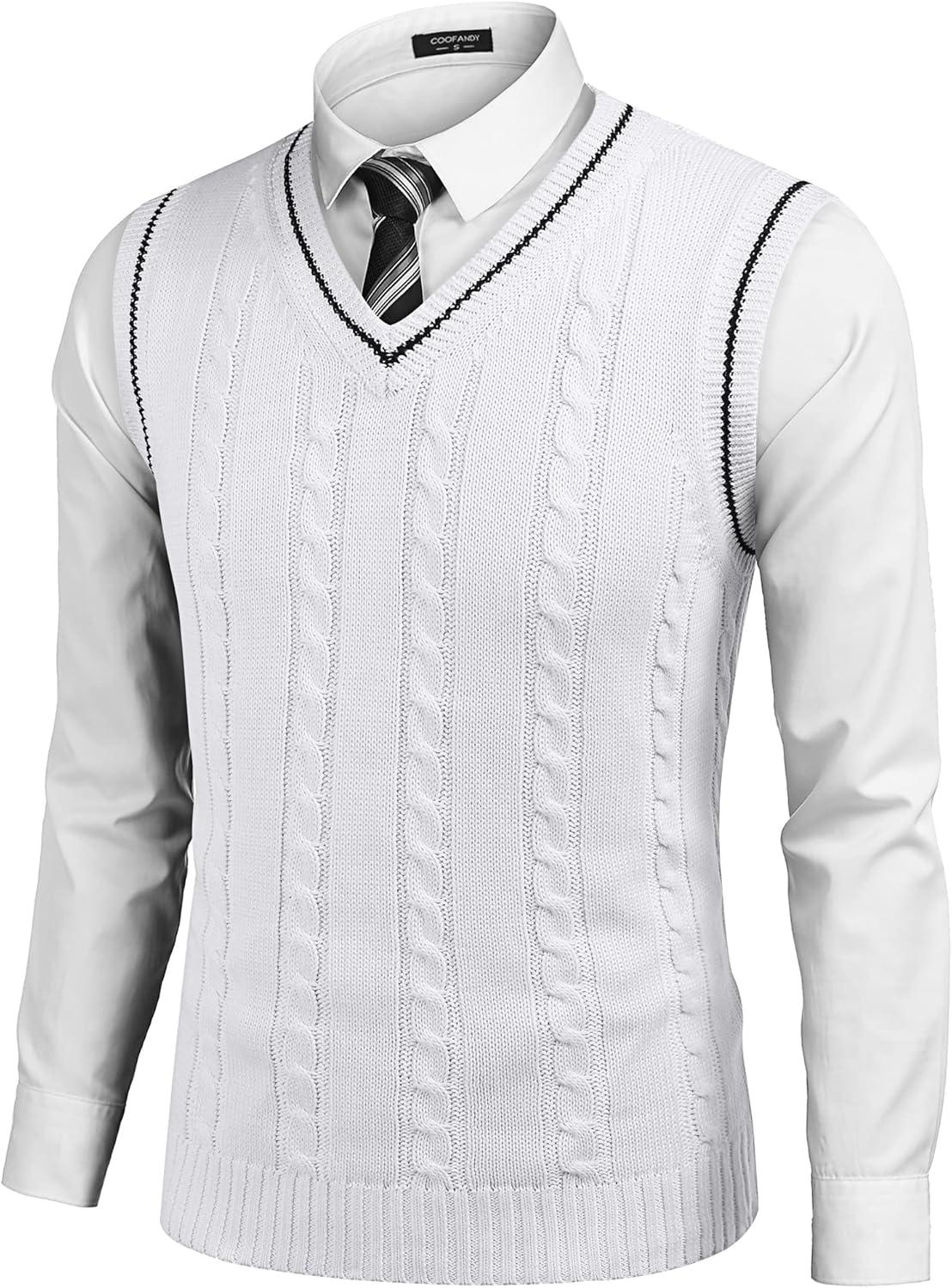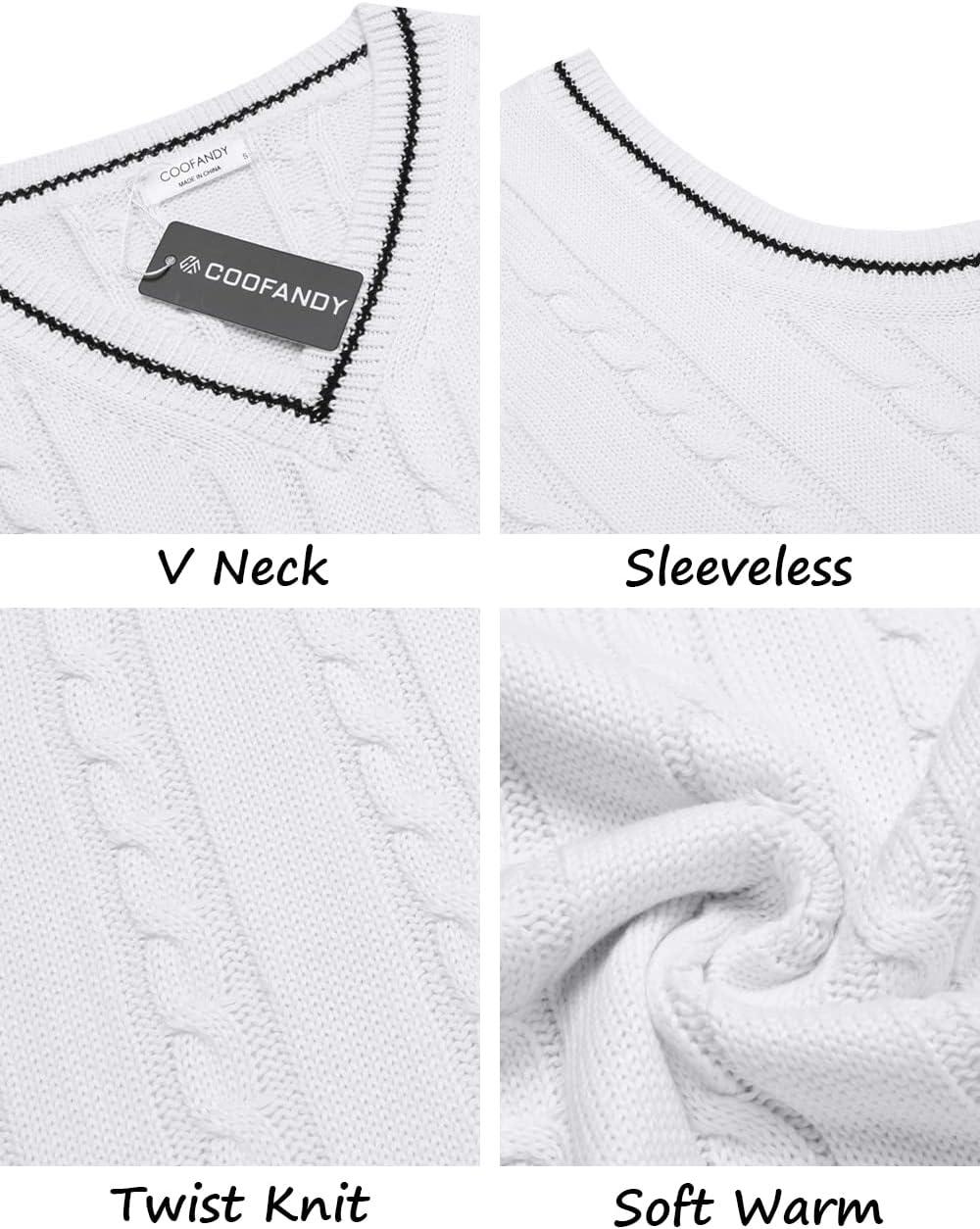 COOFANDY Men’s Sweater Vest V Neck Slim Fit Casual Sleeveless Twisted Knitted Pullover Sweater(White)