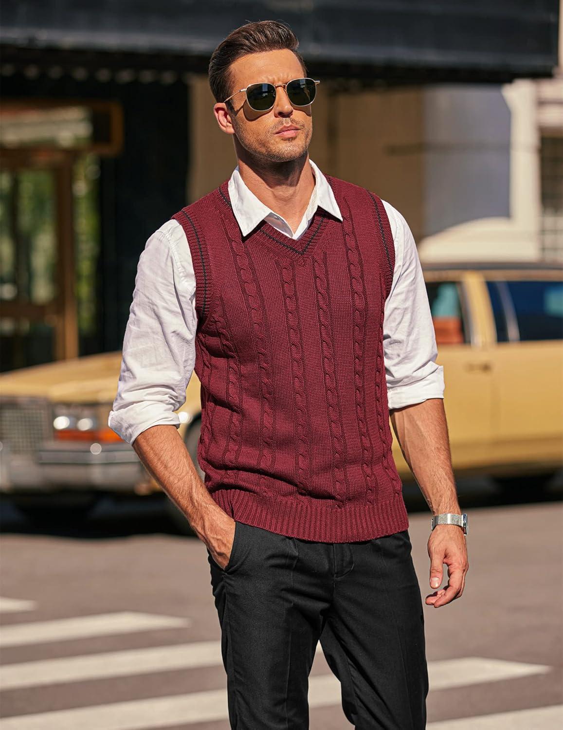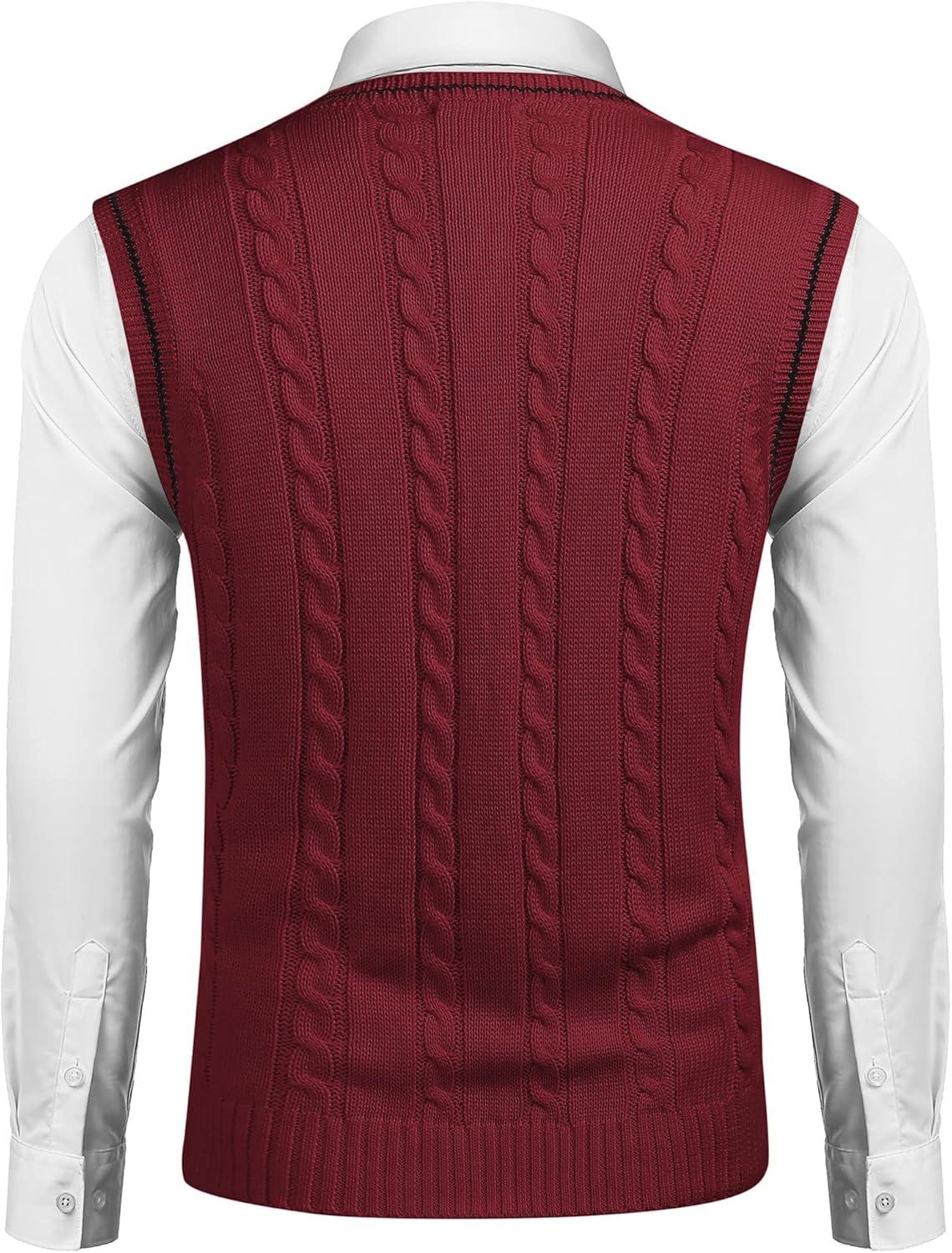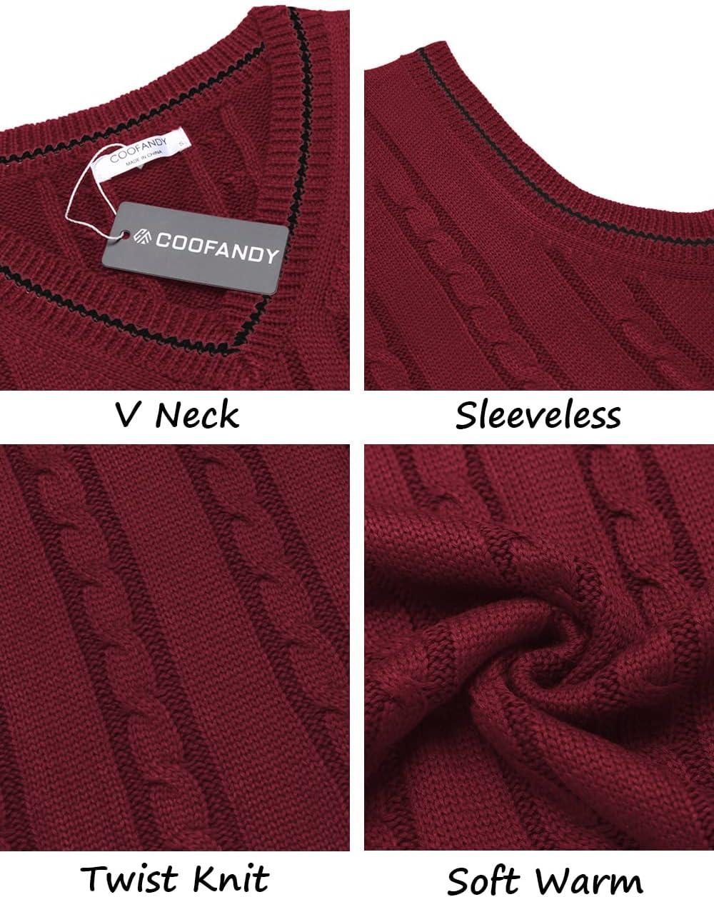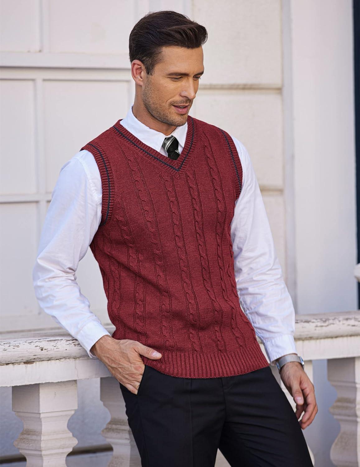 COOFANDY Men’s Sweater Vest V Neck Slim Fit Casual Sleeveless Twisted Knitted Pullover Sweater(Wine Red)