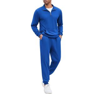 COOFANDY Men’s Tracksuit 2 Piece Quarter Zip Sweatsuit Sets Casual Athletic Running Jogging Suits(Blue)