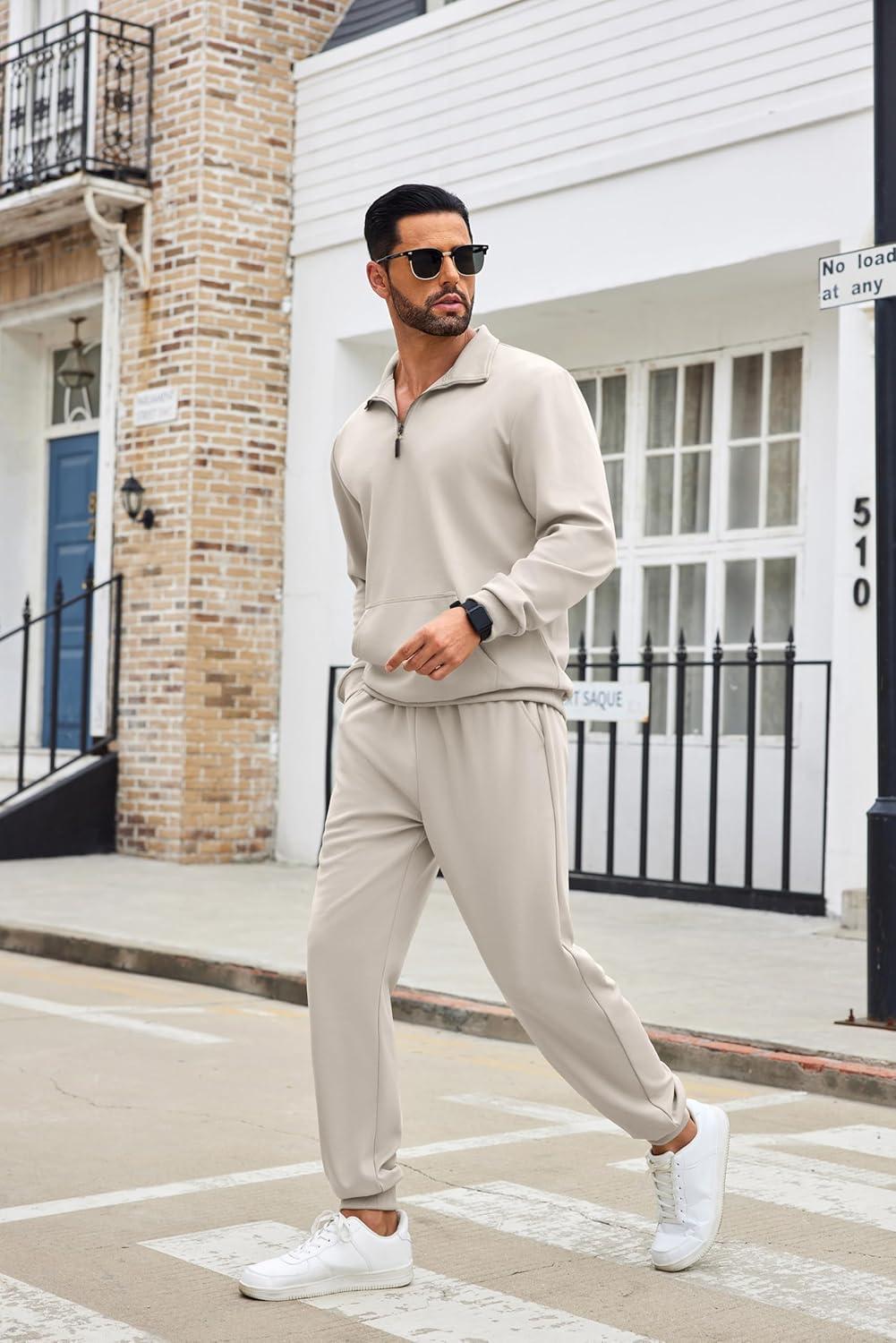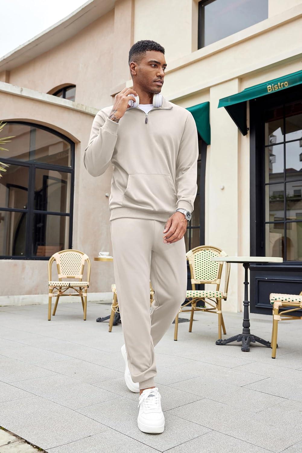 COOFANDY Men’s Tracksuit 2 Piece Quarter Zip Sweatsuit Sets Casual Athletic Running Jogging Suits(Beige)