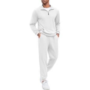 COOFANDY Men’s Tracksuit 2 Piece Quarter Zip Sweatsuit Sets Casual Athletic Running Jogging Suits(White)