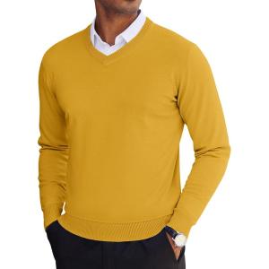 COOFANDY Men’s V Neck Sweater Lightweight Knitted Pullover Sweaters(Yellow)