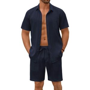 • COOFANDY Mens 2 Piece Suit Slim Fit 2 Button Formal Jacket Suits Pants Set for Wedding Business Prom(A-navy Blue)