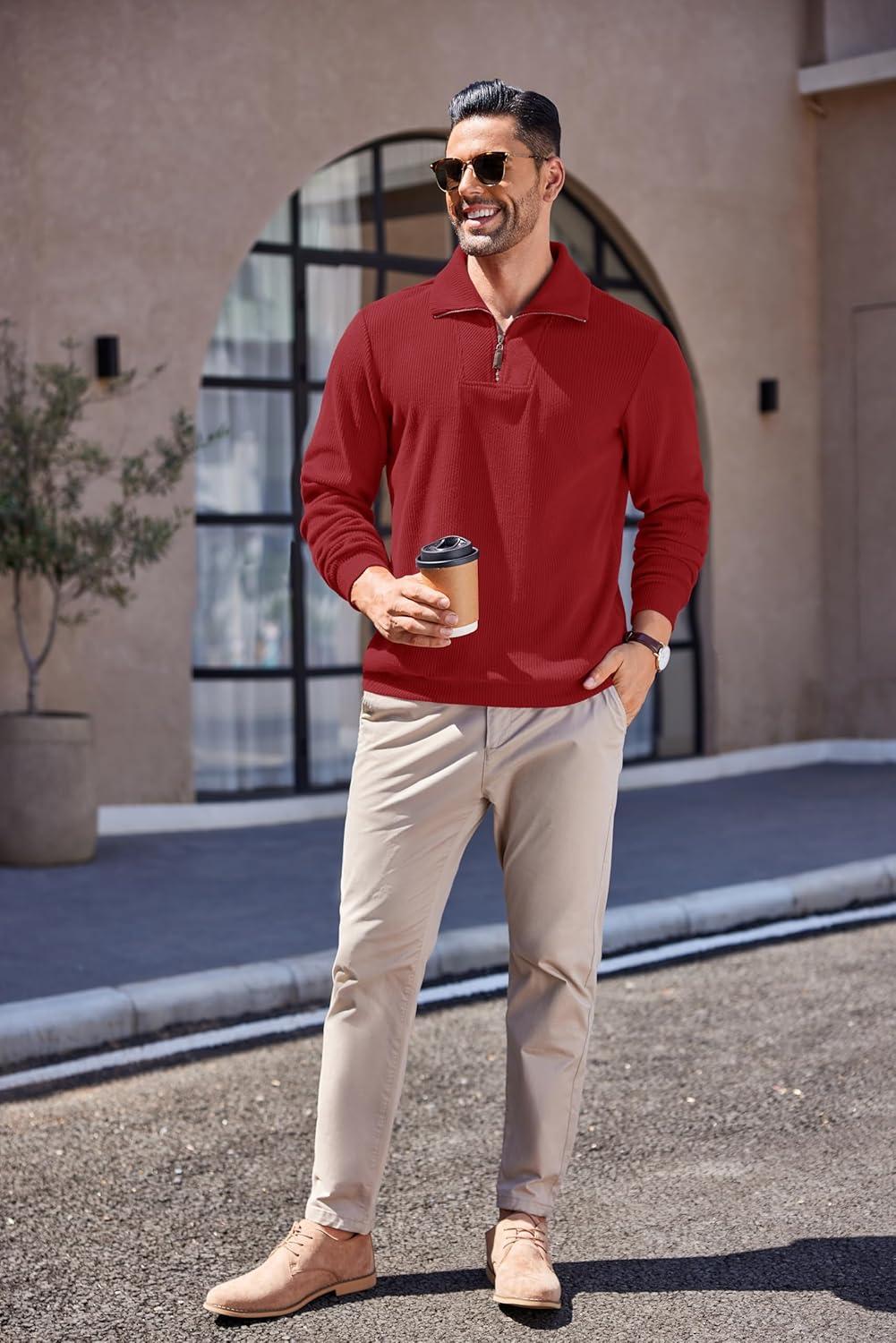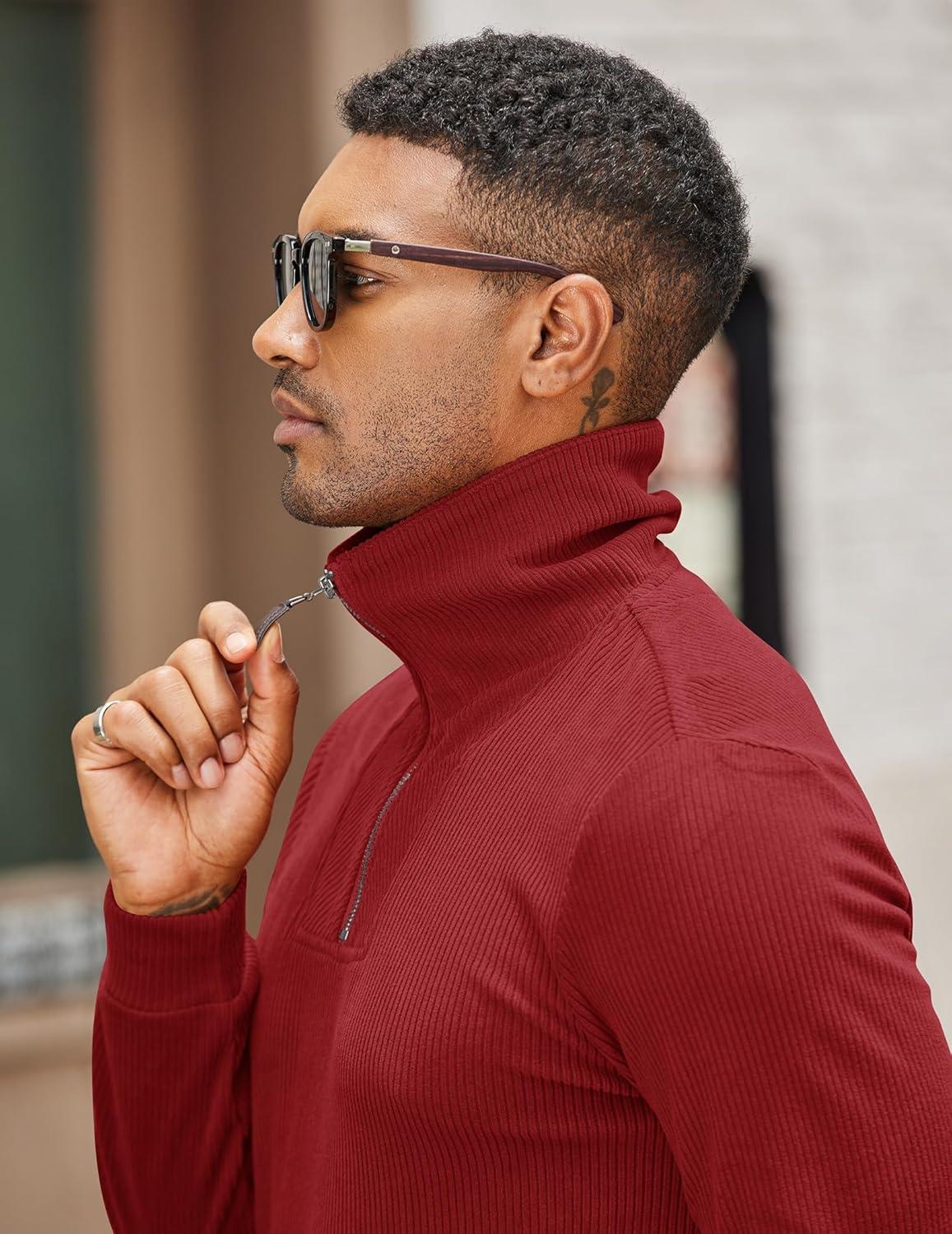 COOFANDY Men’s Quarter Zip Up Sweaters Slim Fit Lightweight Mock Neck Pullover Casual Polo Sweaters(Christmas Red)