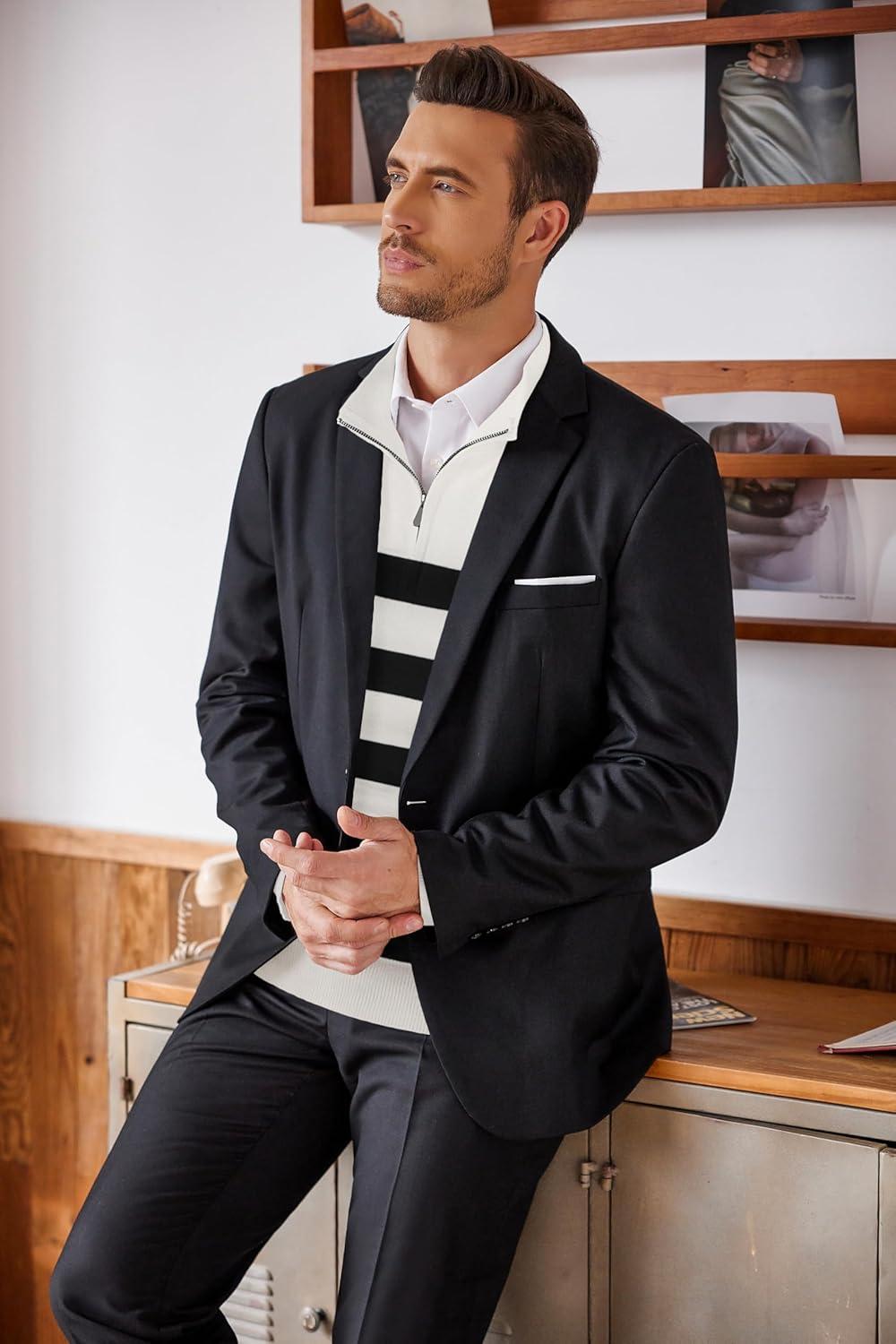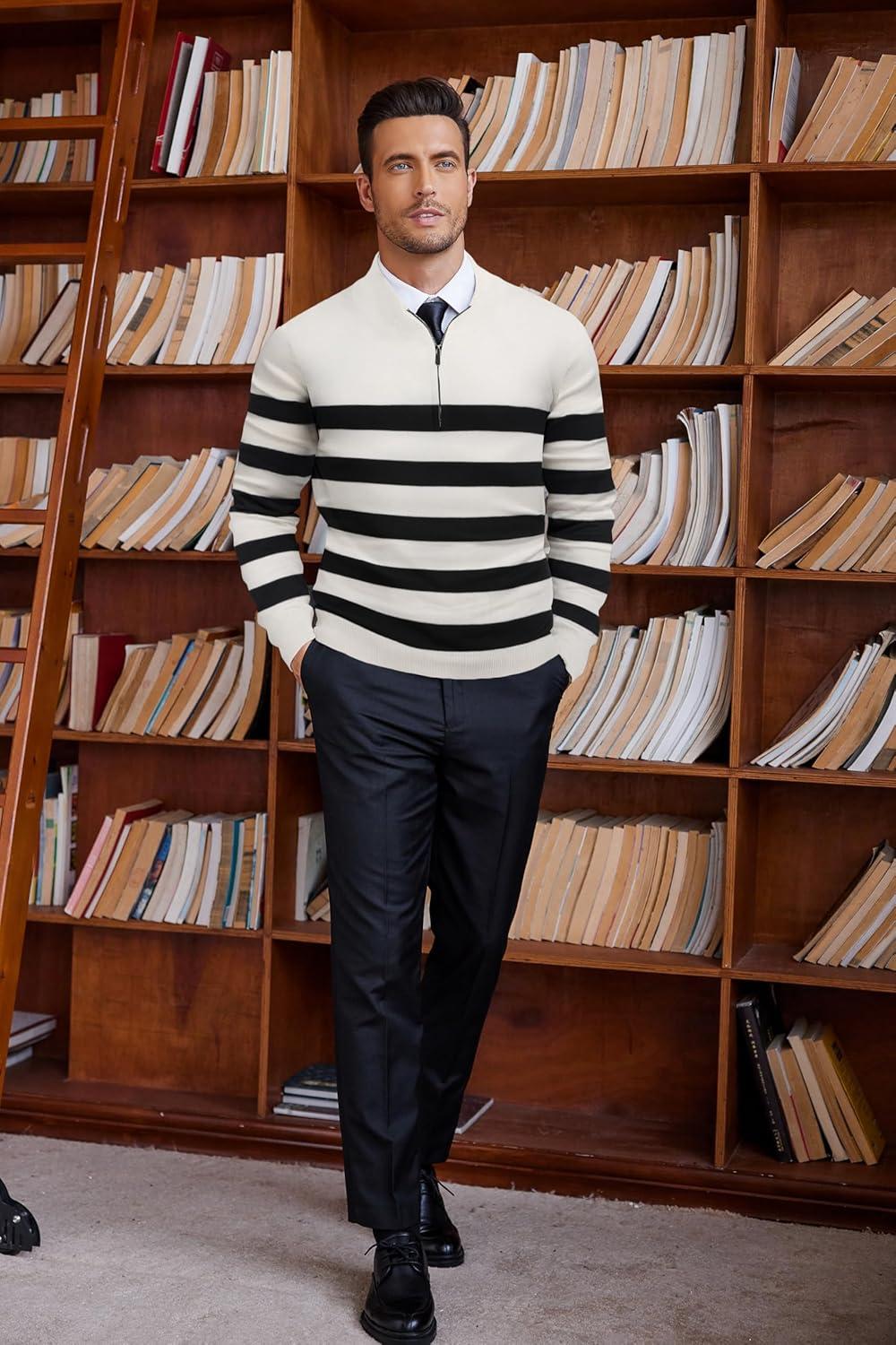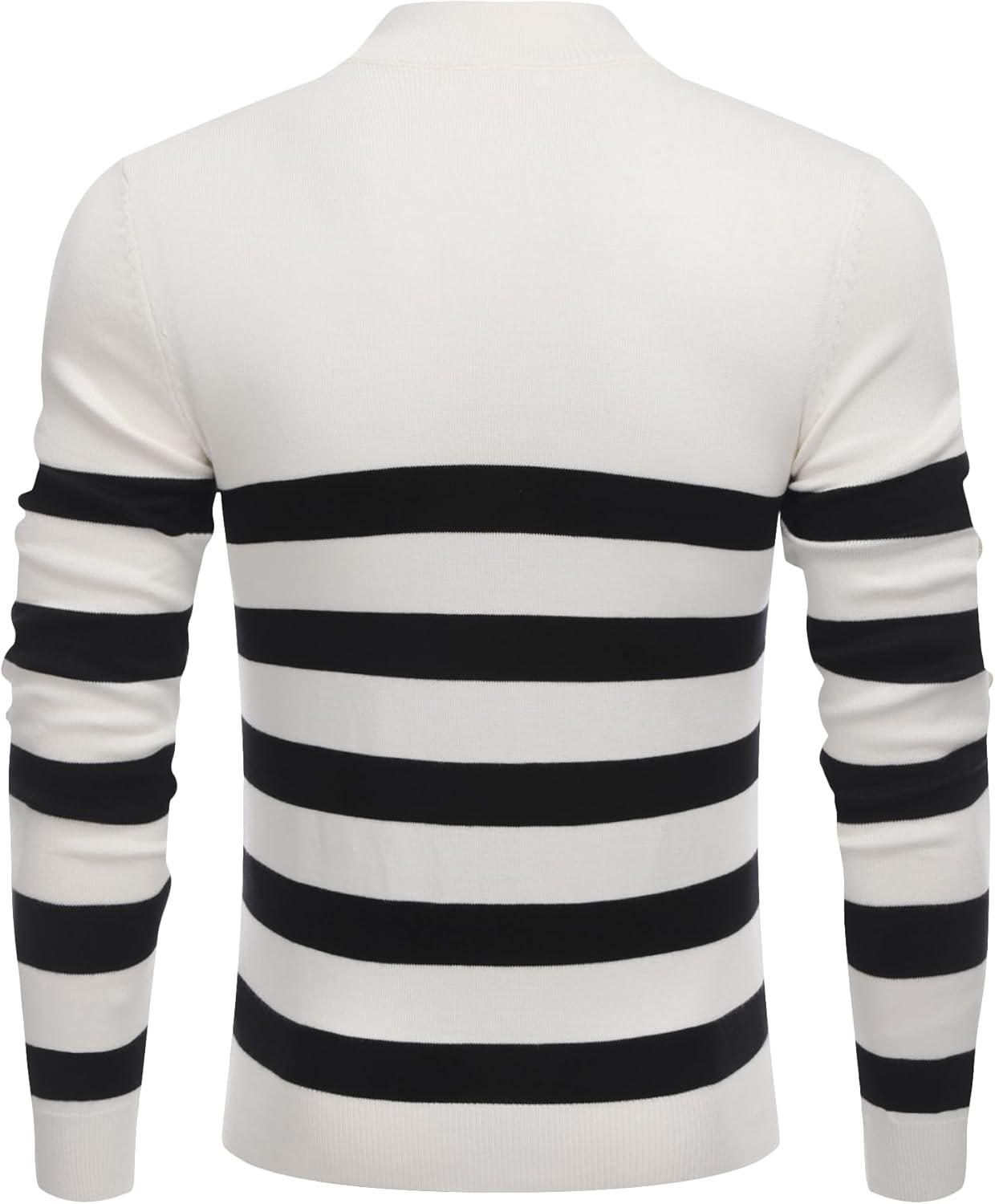 COOFANDY Men’s Quarter Zip Up Sweaters Slim Fit Lightweight Mock Neck Pullover Casual Polo Sweaters(Black & White Stripe)