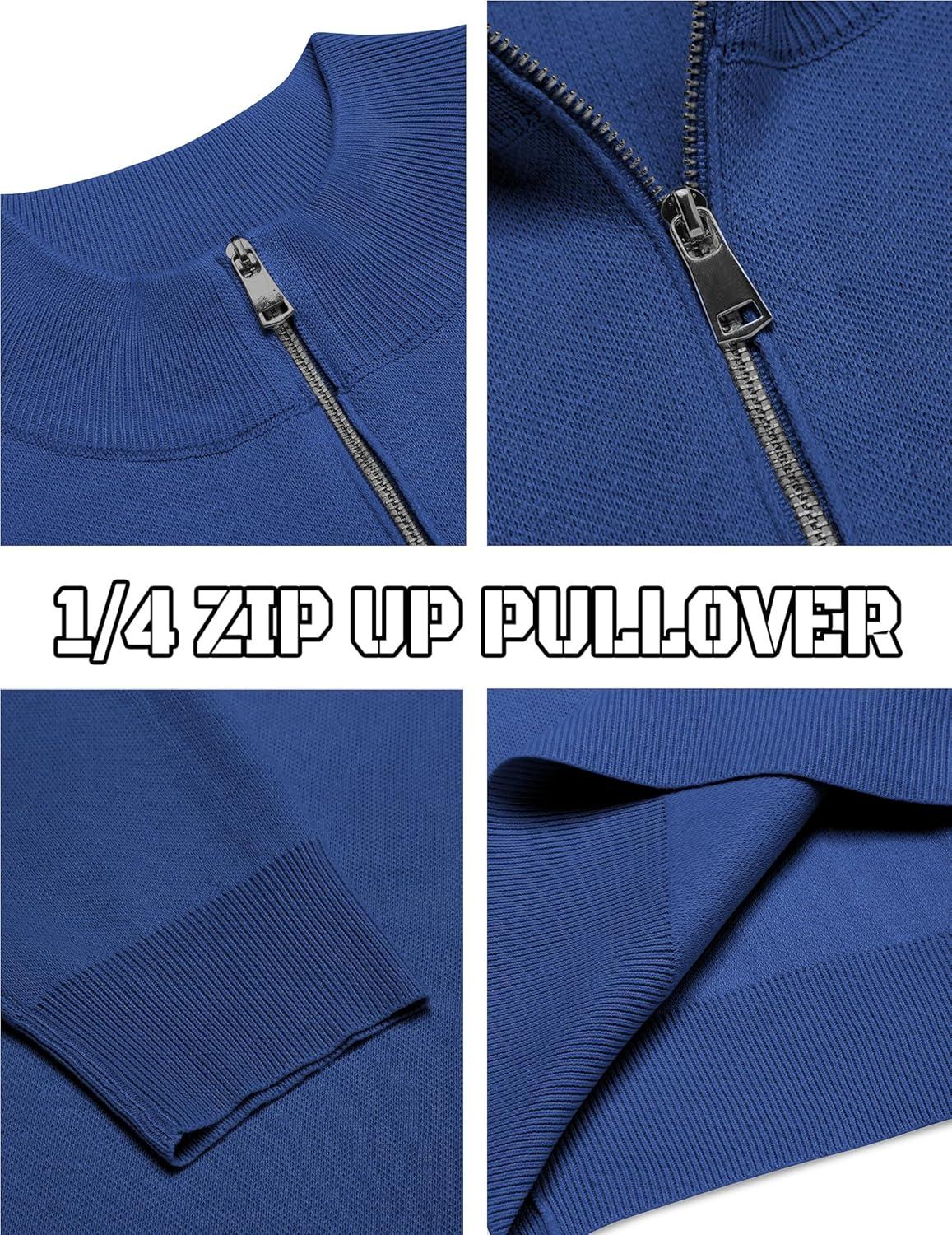 COOFANDY Men’s Quarter Zip Up Sweaters Slim Fit Lightweight Mock Neck Pullover Casual Polo Sweaters(Blue)