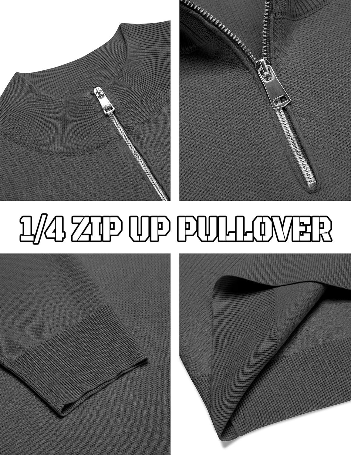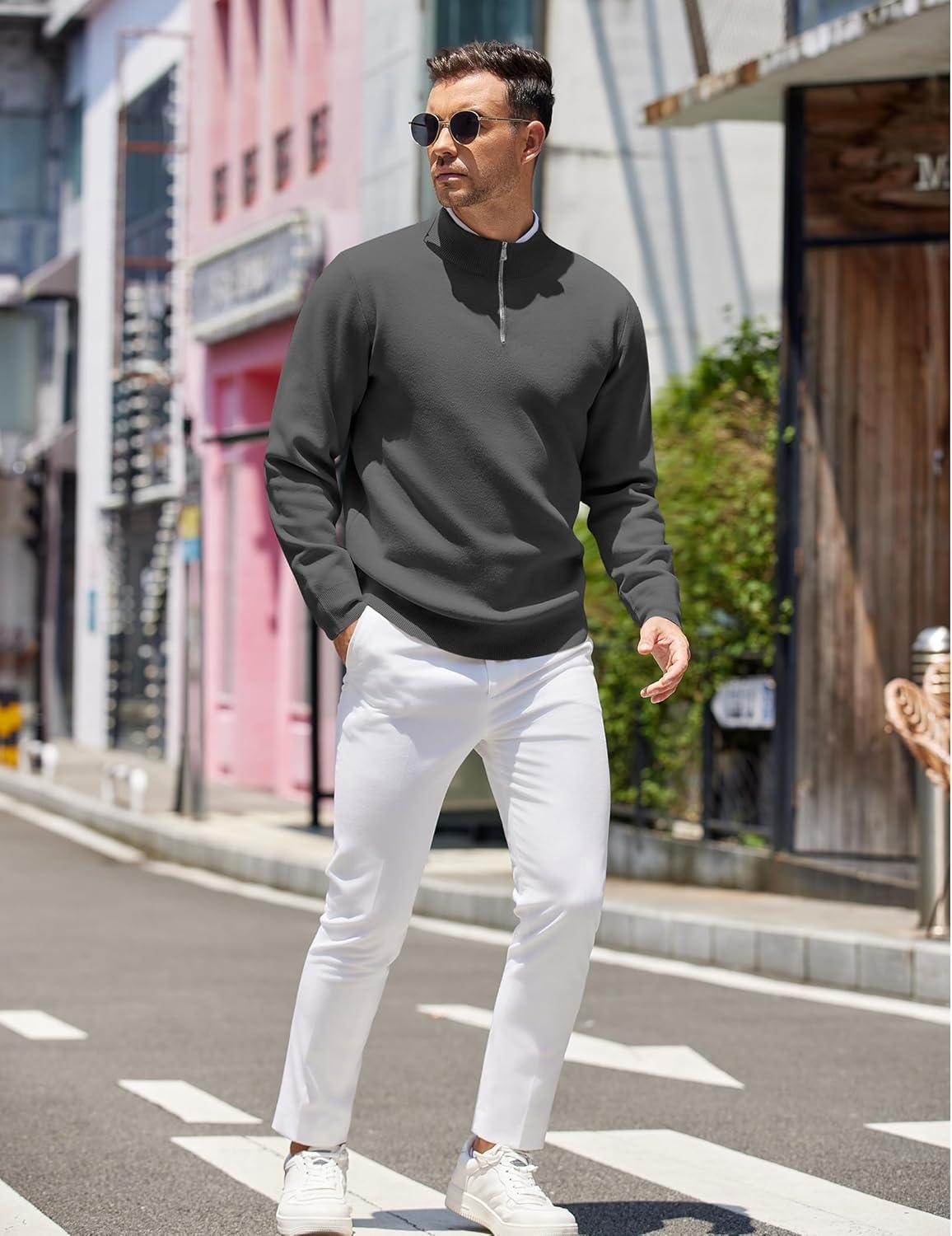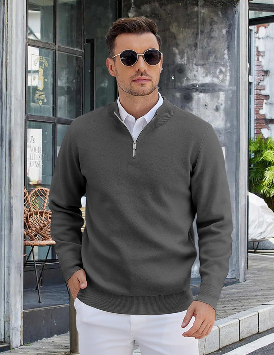 COOFANDY Men’s Quarter Zip Up Sweaters Slim Fit Lightweight Mock Neck Pullover Casual Polo Sweaters(Charcoal)