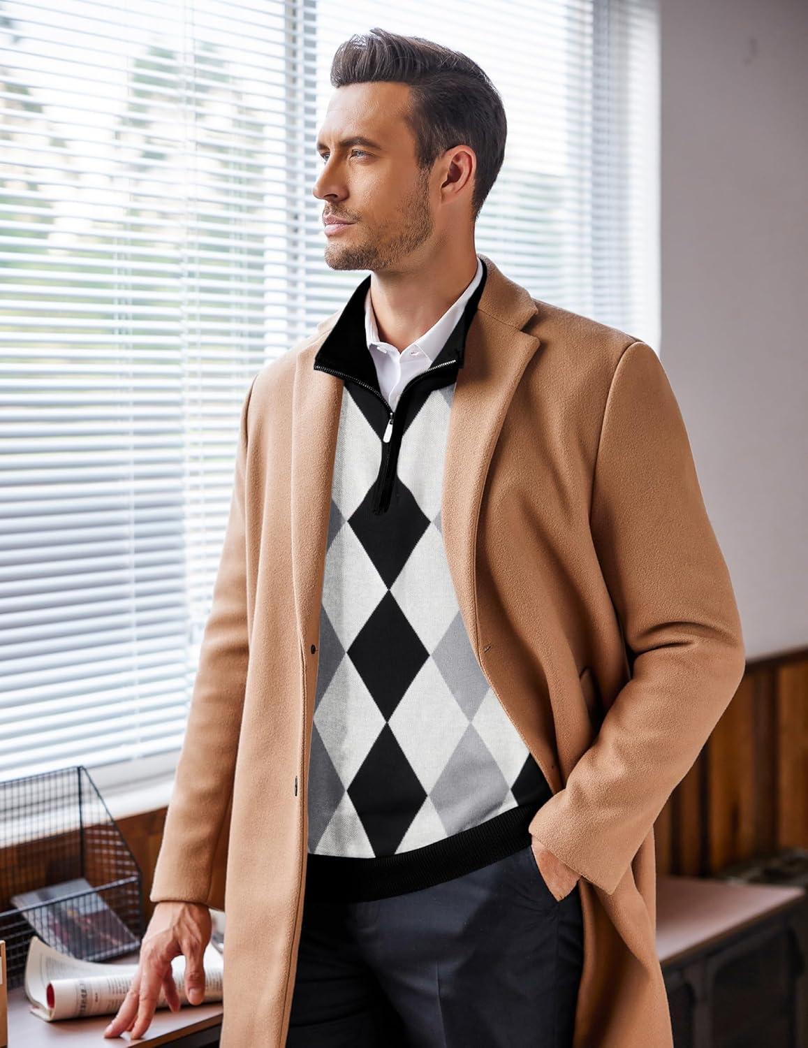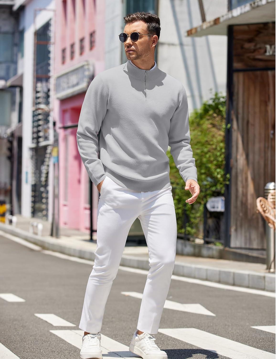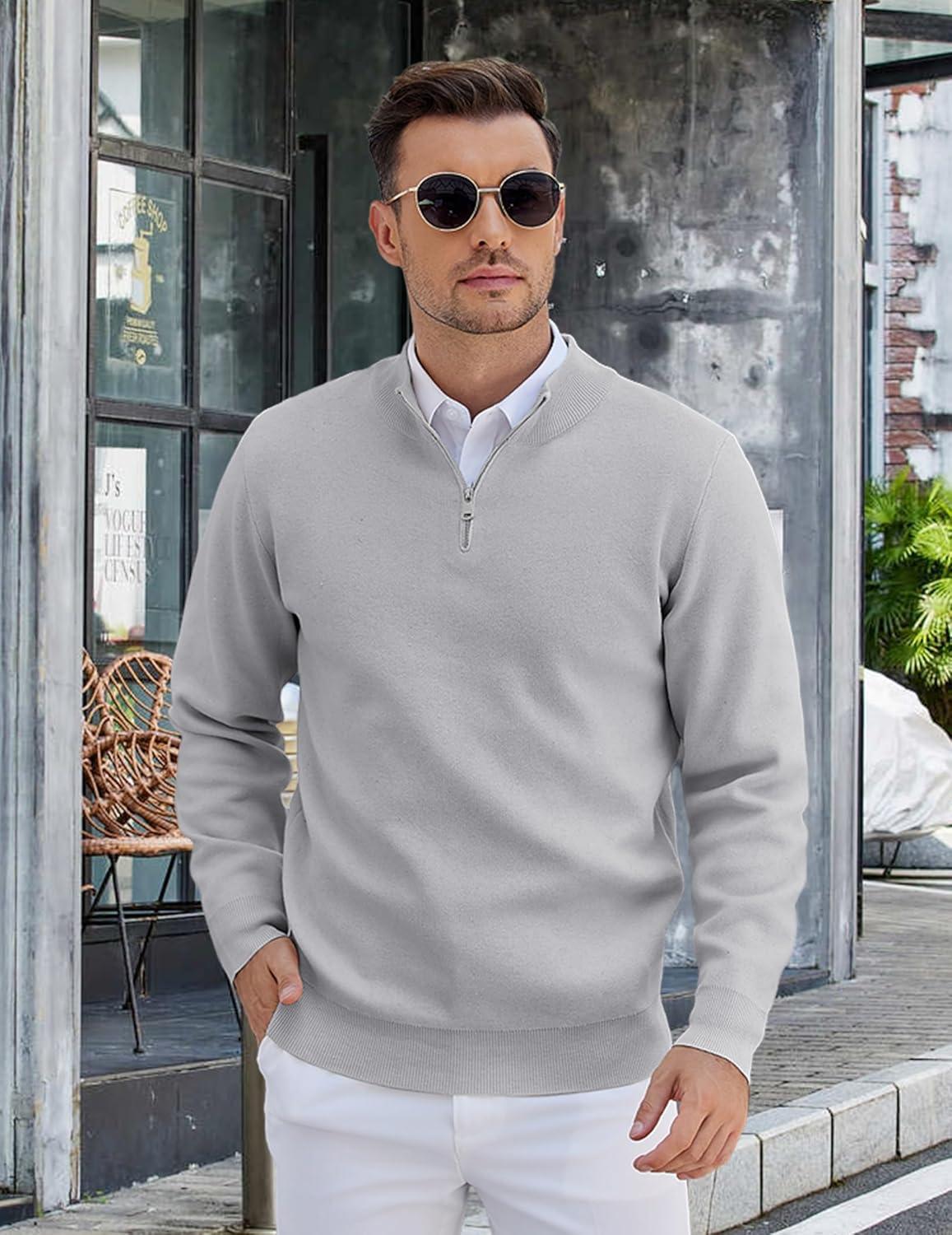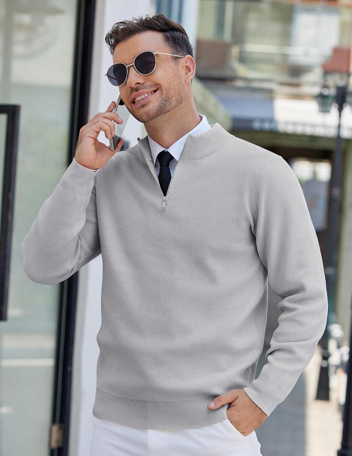 • COOFANDY Men’s Quarter Zip Up Sweaters Slim Fit Lightweight Mock Neck Pullover Casual Polo Sweaters(Dark Grey)
