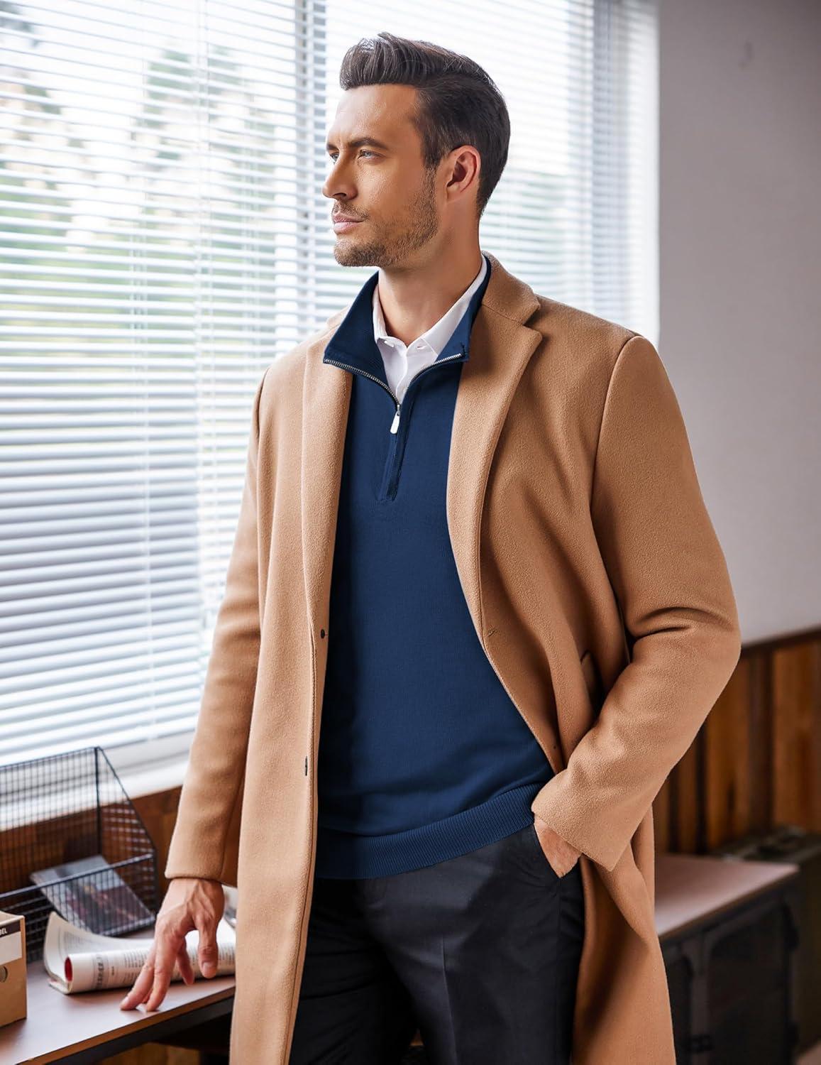 • COOFANDY Men’s Quarter Zip Up Sweaters Slim Fit Lightweight Mock Neck Pullover Casual Polo Sweaters(Dark Khaki)