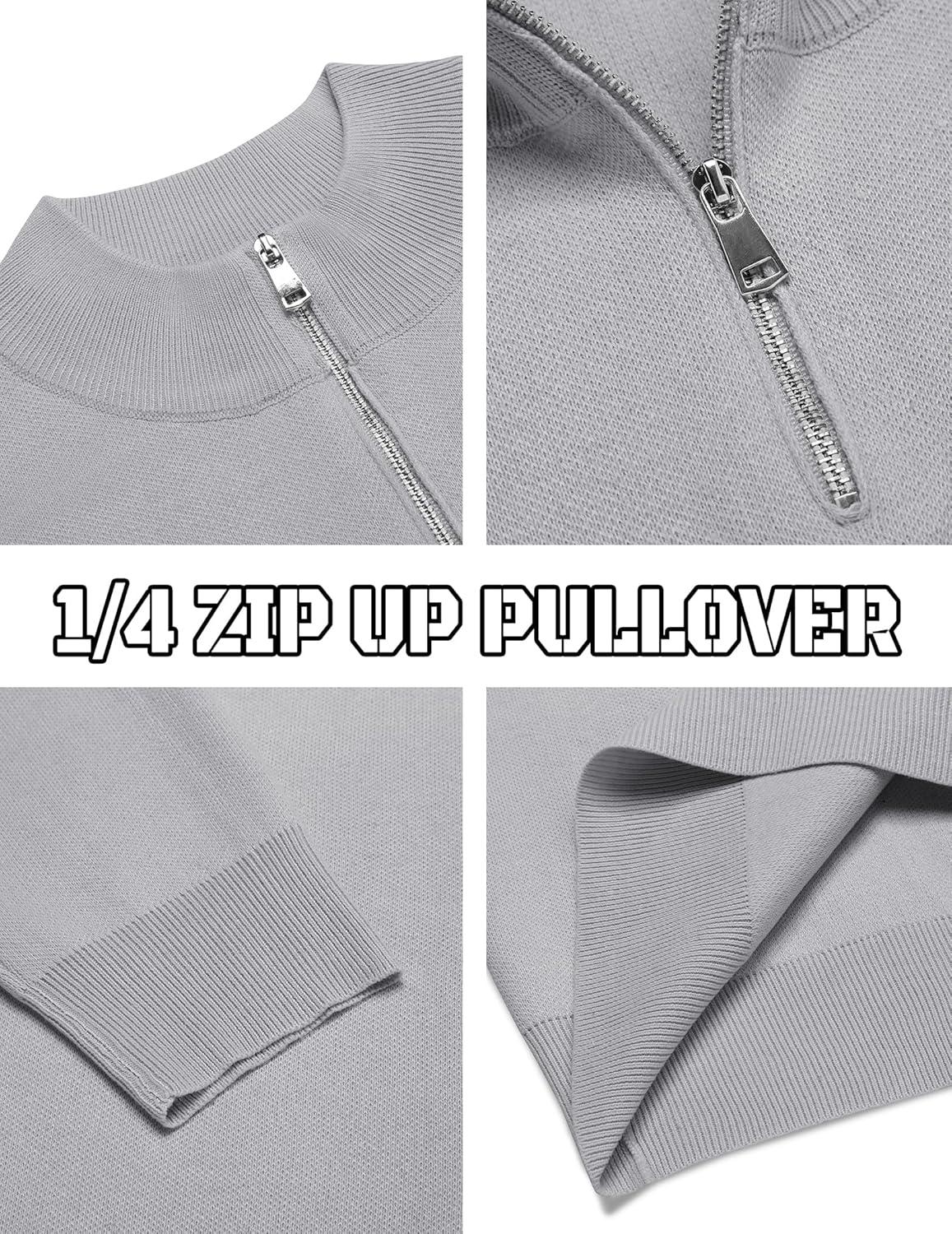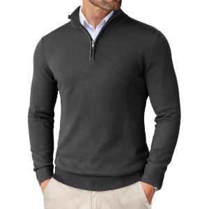 COOFANDY Men’s Quarter Zip Up Sweaters Slim Fit Lightweight Mock Neck Pullover Casual Polo Sweaters(Dark Grey)