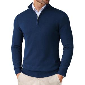 COOFANDY Men’s Quarter Zip Up Sweaters Slim Fit Lightweight Mock Neck Pullover Casual Polo Sweaters(Dark Blue)